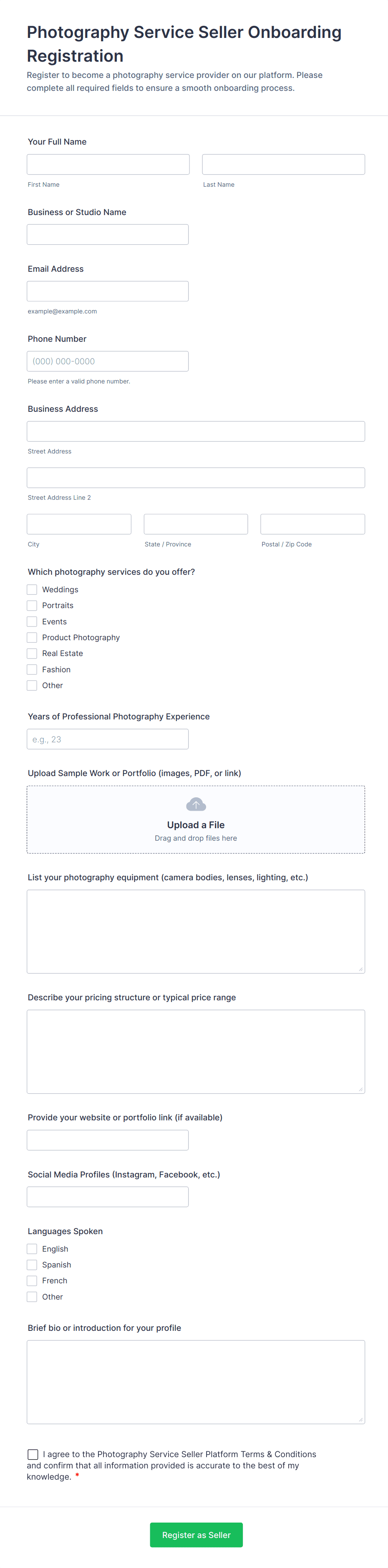 - Marketplace Vendor Applications: For online marketplaces that require sellers to apply and be approved before listing products.