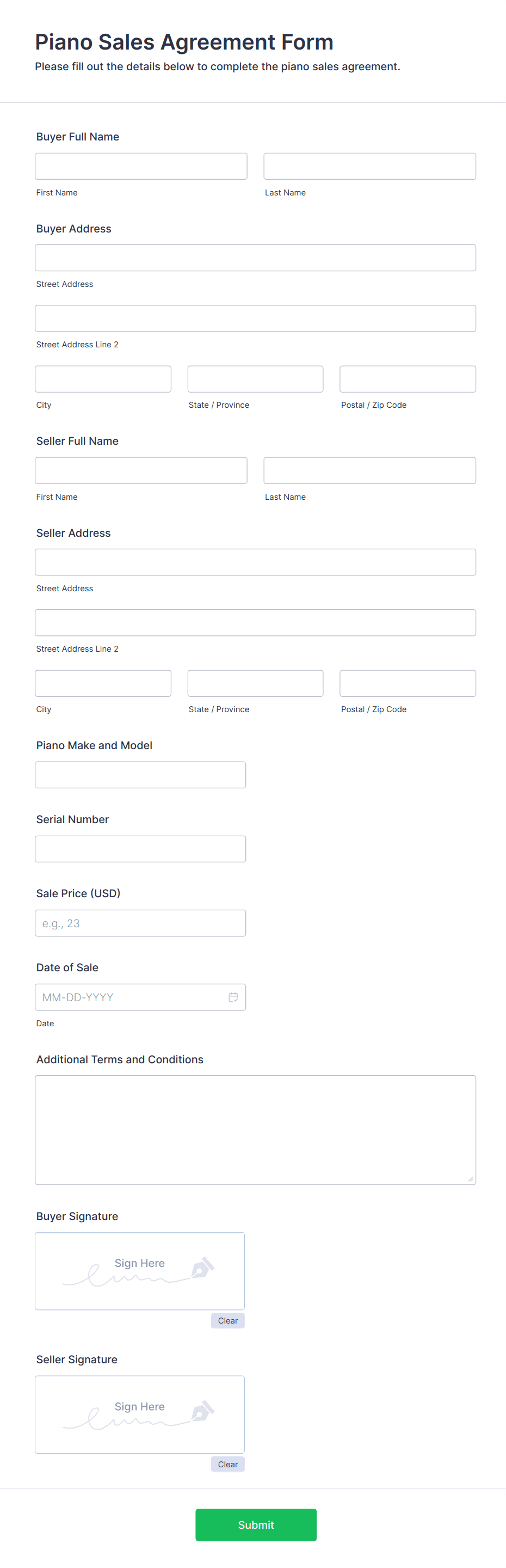 Ever wanted to buy something but haggle it a little bit to make a deal? Well now you can! This form lets you and your customer make a deal and close a sale. Allowing you to specify the product, terms for finalizing the sale and when it will take place as an agreed transaction.