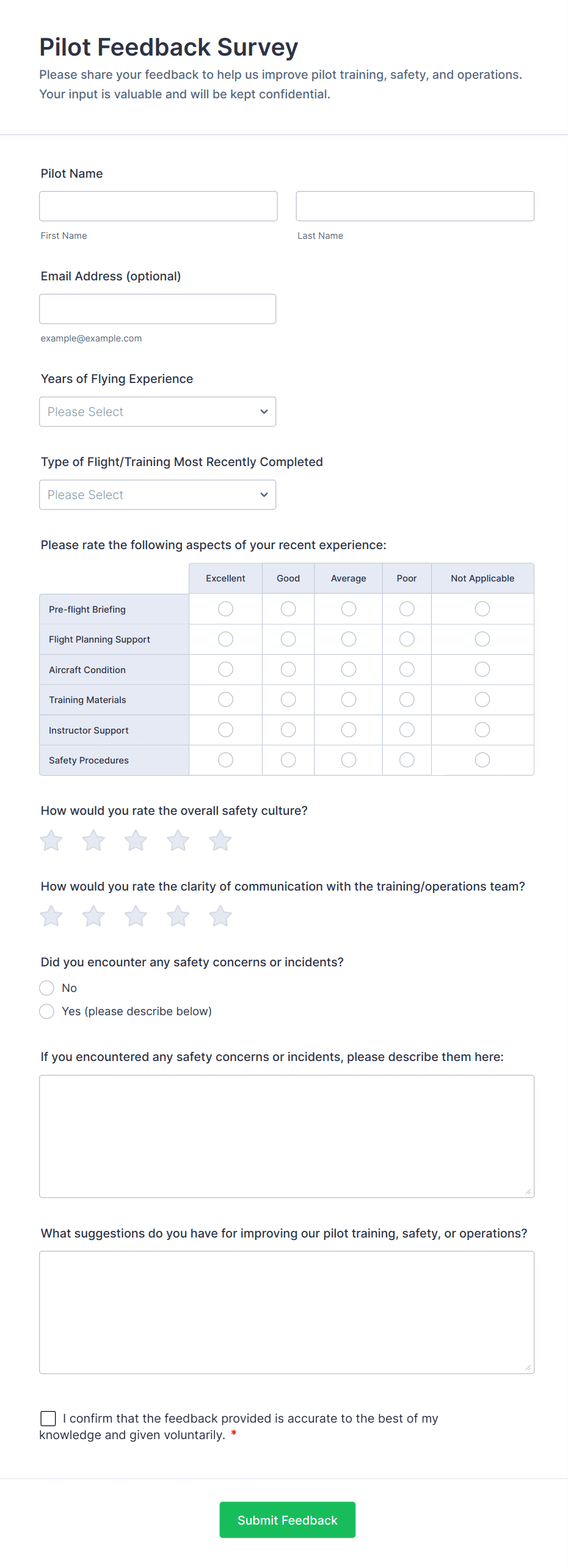 - For customer satisfaction surveys, include Net Promoter Score (NPS) fields or star ratings.
