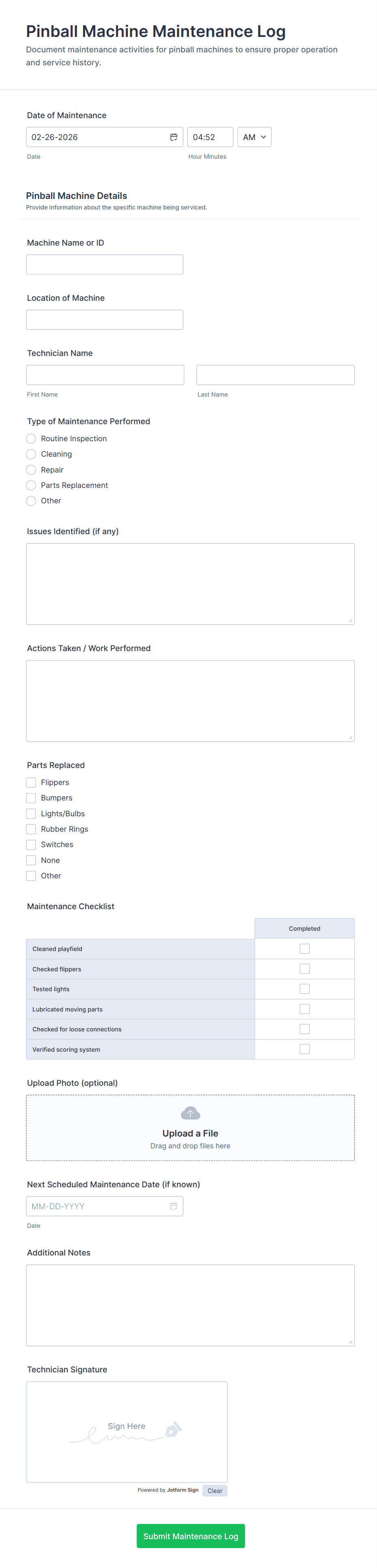 Creating an equipment maintenance form with Jotform helps you standardize maintenance reporting and keep service history organized and easy to track.
