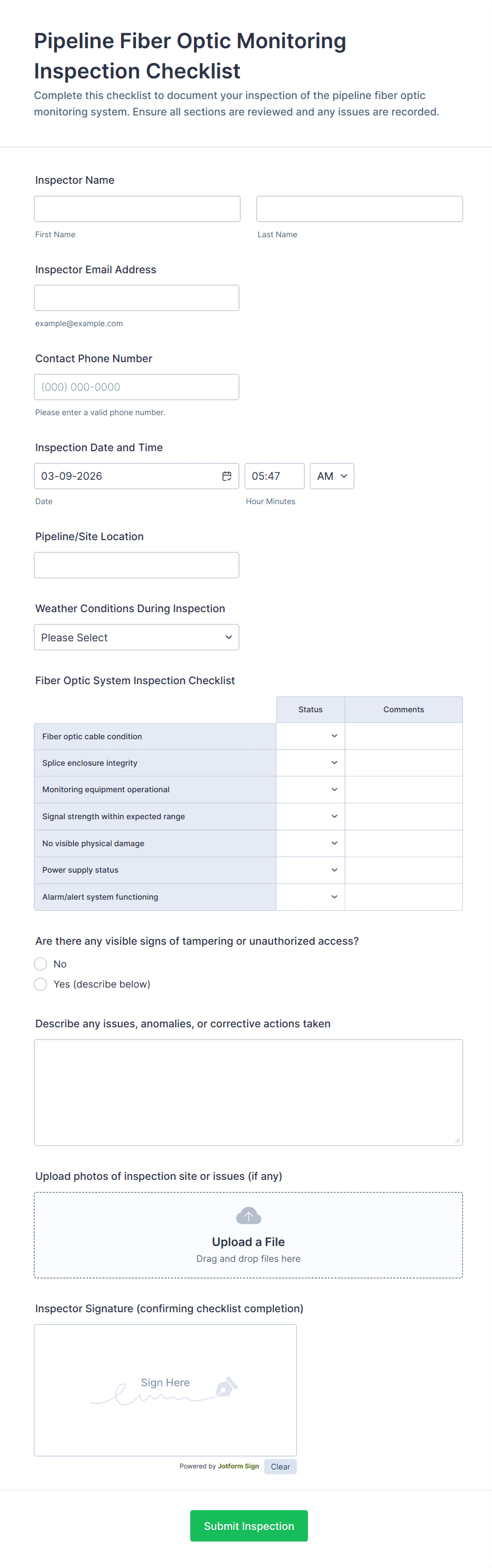 - Equipment Monitoring Forms: Require asset identification fields, maintenance schedules, and status dropdowns.