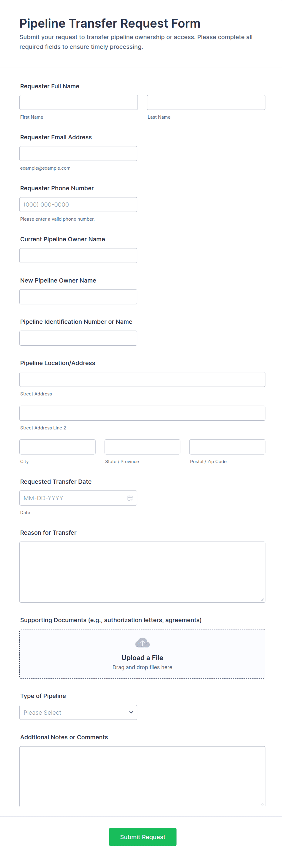 Request forms are essential tools for gathering and organizing information when someone needs to ask for something — whether it’s a service, resource, approval, or support. These forms streamline the process of submitting and managing requests in a wide range of scenarios, such as equipment requests, maintenance requests, time-off requests, IT support, purchase orders, facility bookings, and more. By providing a standardized way to collect all necessary details, request forms help organizations ensure that every request is clear, trackable, and actionable, reducing miscommunication and delays.