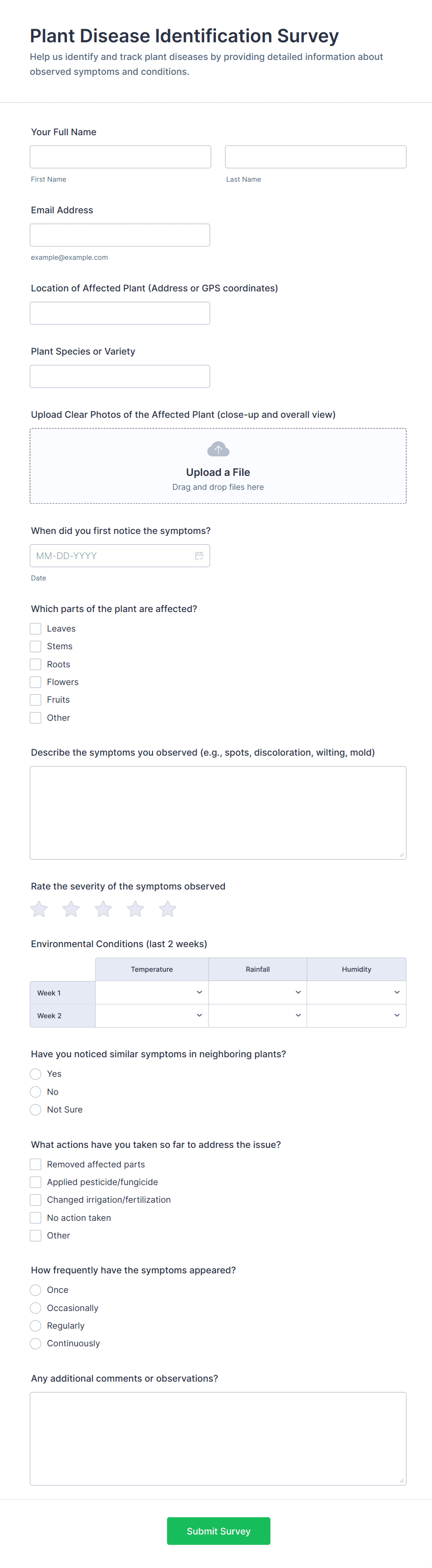 - For customer satisfaction surveys, include Net Promoter Score (NPS) fields or star ratings.