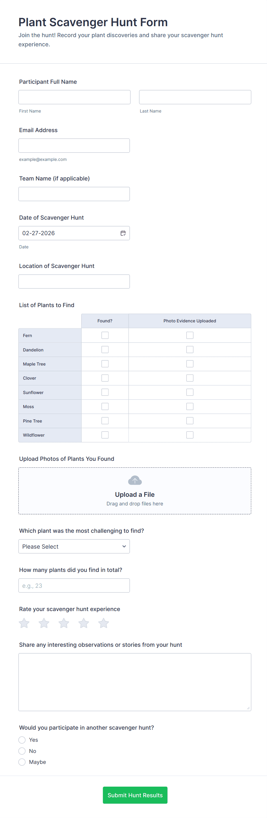 Get feedback on how much your summer camp event is being anticipated or get the number of people who would register for your summer camp activity. Get this Summer Camp Interest Form and publish this form for free!