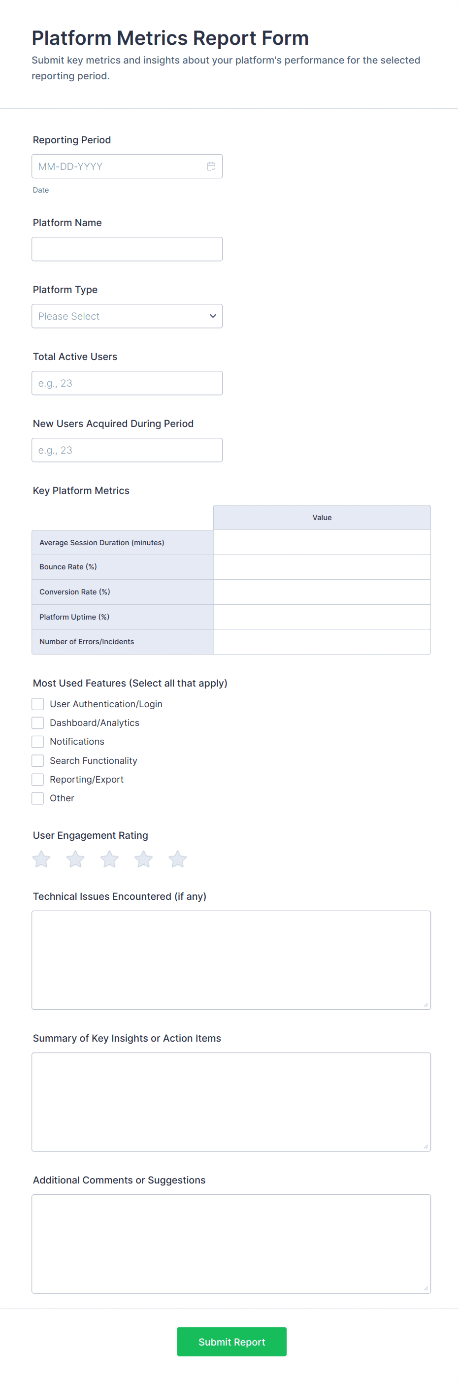 • Conditional Logic: Show or hide fields based on previous answers to streamline the reporting process.