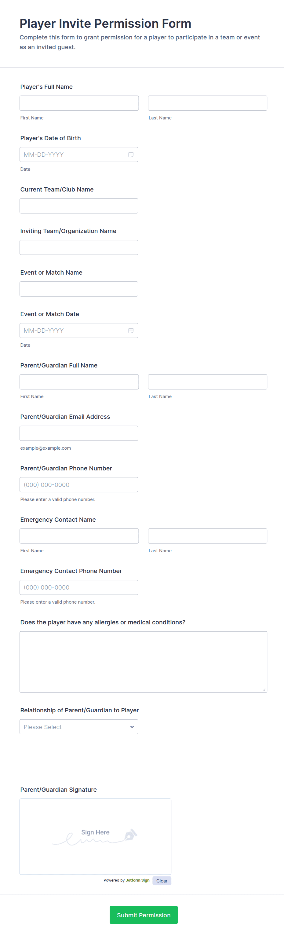 Get permission from parents and guardians to let their children participate in your program. Free parental consent form. Easy to customize and embed. No coding required.