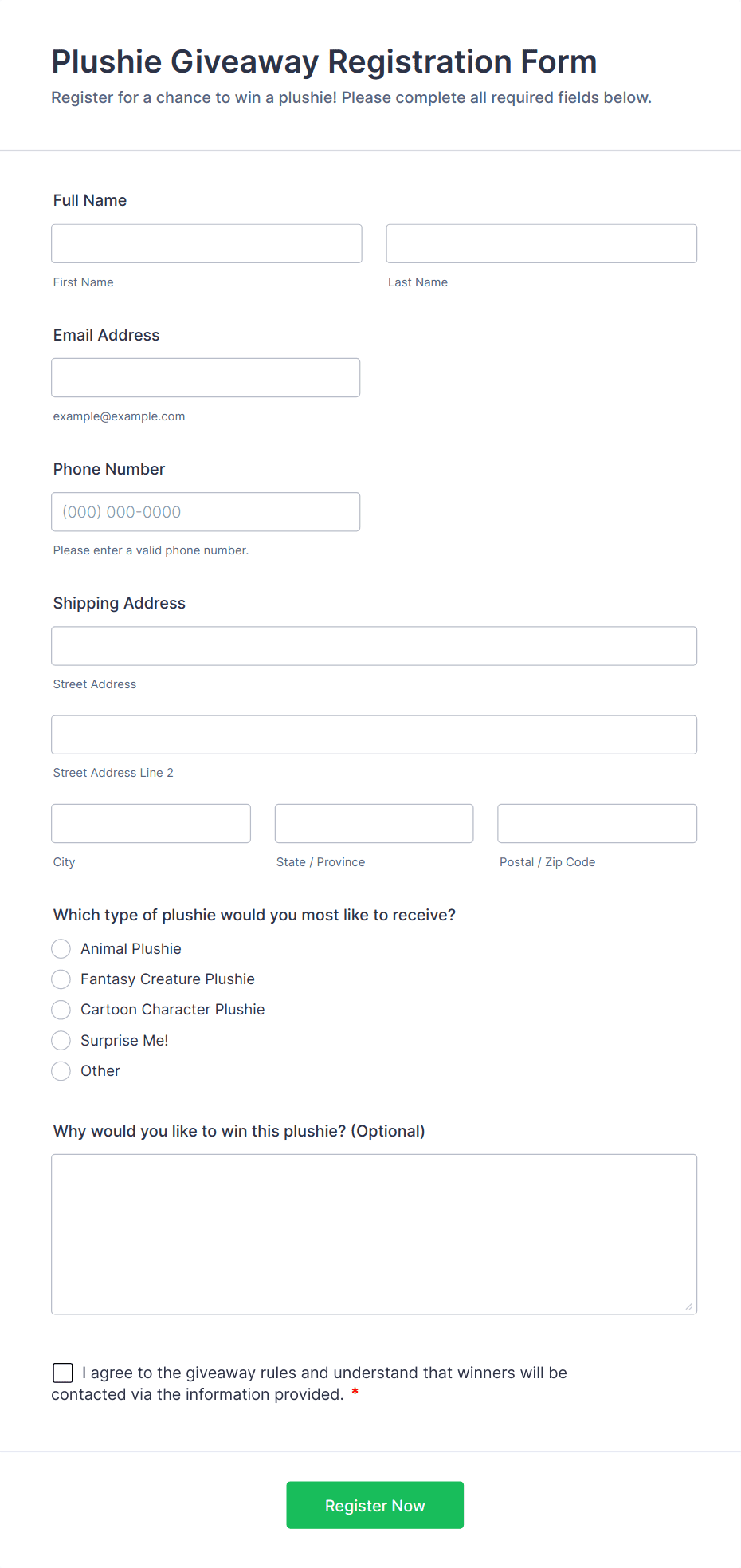 Giveaway forms help businesses and organizations engage their audience, collect valuable leads, and promote products or events in a structured and efficient way.
