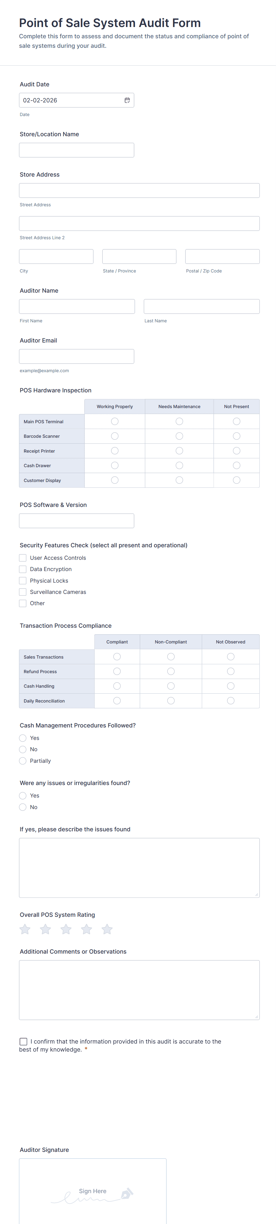 Store Audit Checklist Form