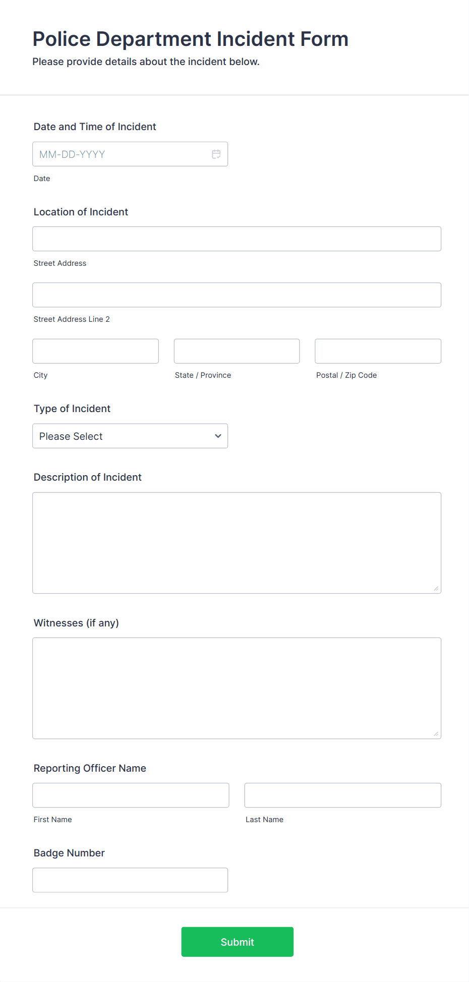 An incident statement form is used to record information about a police report or accident. Whether you work in law enforcement or need to file insurance claims, streamline the process with our free Incident Statement Form!