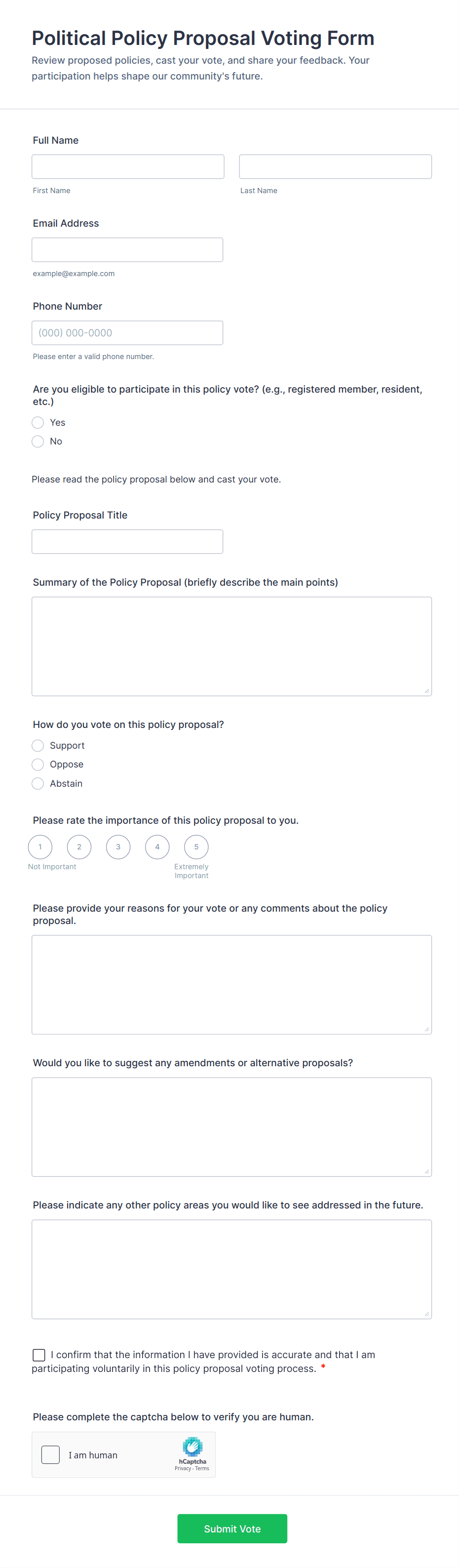 By following these steps, you can create a tailored voting form that meets your specific needs, ensures data integrity, and provides a seamless experience for all participants.