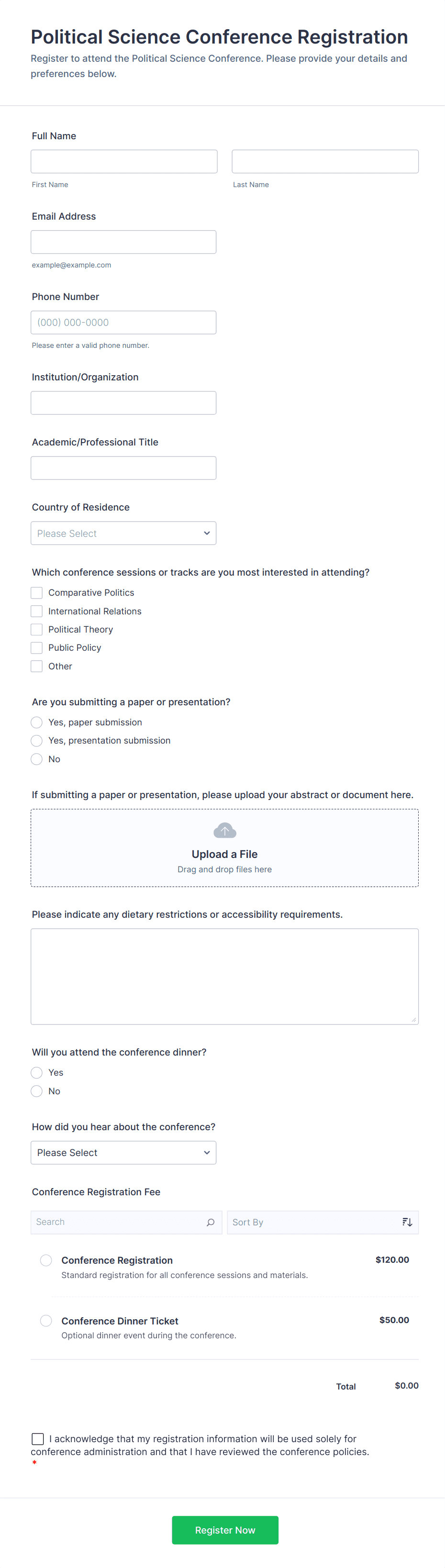 By following these steps, you can create a tailored Conference Registration Form that streamlines the sign-up process, ensures accurate data collection, and enhances the overall experience for both organizers and attendees.