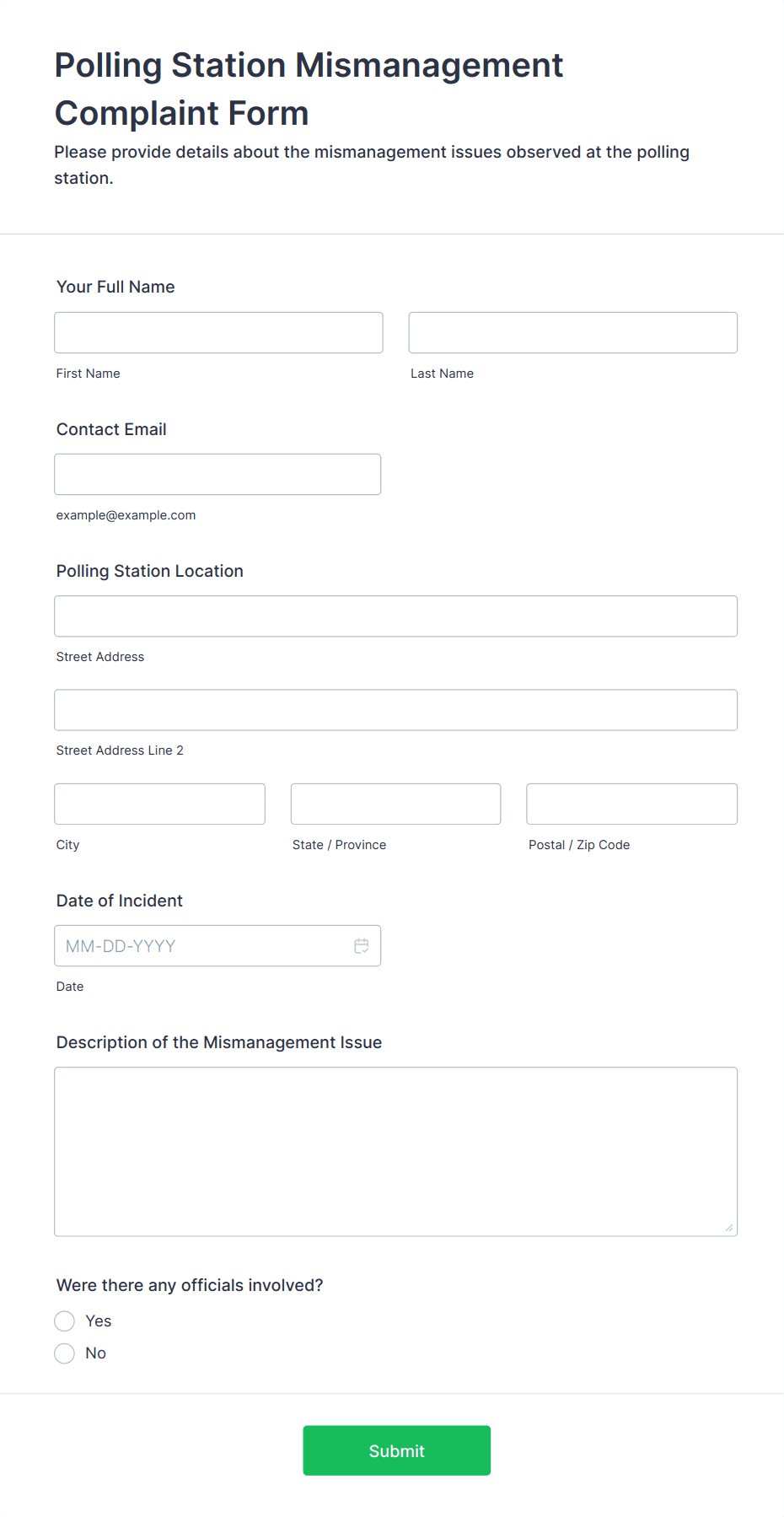 An Online Complaint Form is a form template that streamlines customer feedback process. It's a perfect solution for businesses to efficiently capture, track and tackle customer complaints, boosting customer satisfaction rates and retention.
