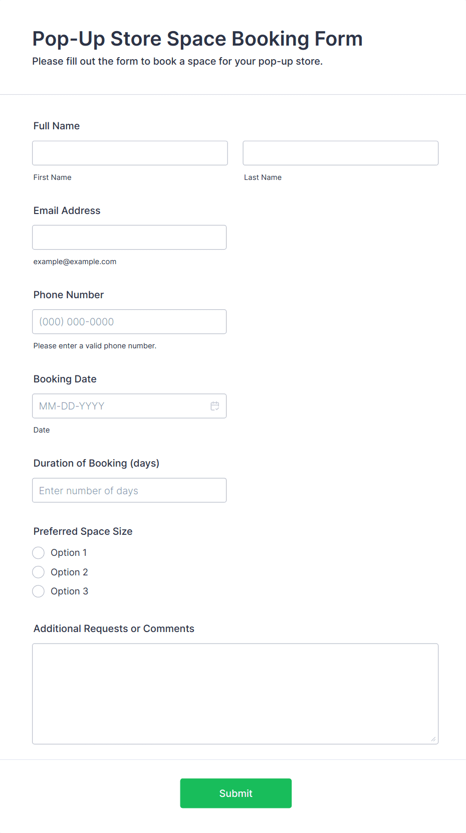 • Content and Fields: A concert booking form may require seat selection and payment integration, while a workshop sign-up might focus on participant details and session preferences. Private event RSVPs may include meal choices or guest information, whereas facility reservations could need date/time selectors and equipment checklists.