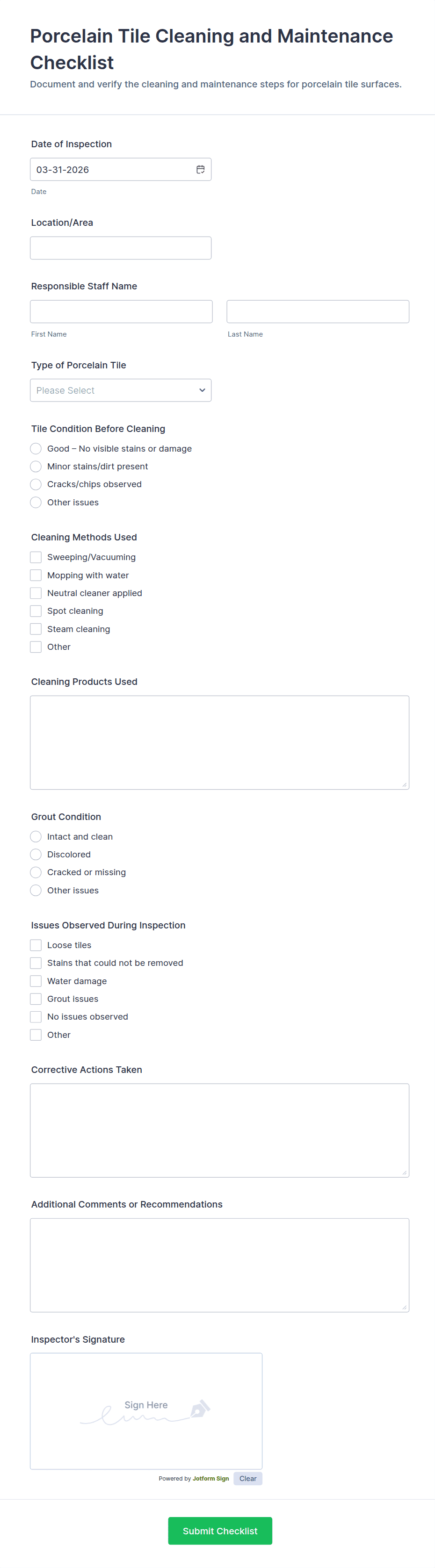 Cleaning Checklist Form