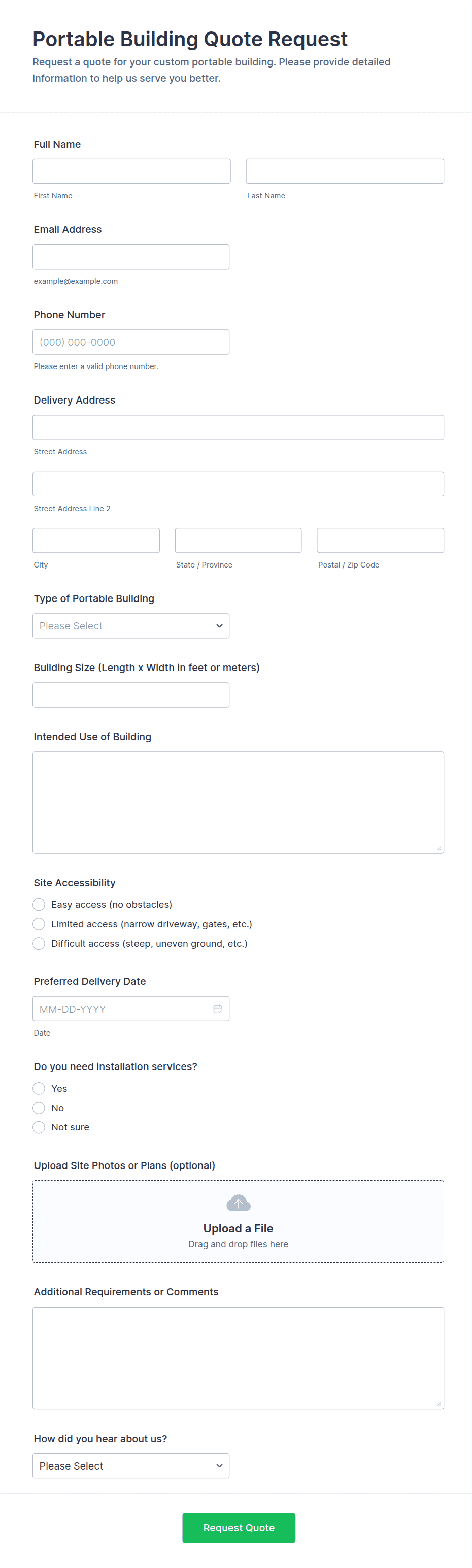 Installation Quote Request Form