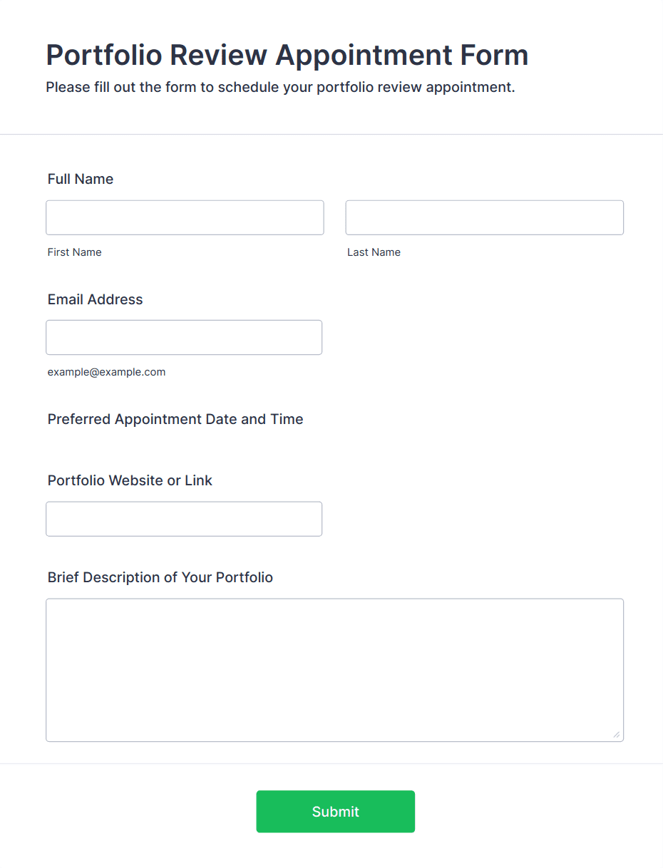 Appointment forms are digital tools designed to streamline the process of scheduling meetings, consultations, interviews, or any type of appointment between service providers and clients. These forms are commonly used by healthcare professionals, salons, educational institutions, consultants, and businesses that require organized time management for their services. By collecting essential information such as preferred dates, times, contact details, and specific service requests, appointment forms help reduce scheduling conflicts, minimize no-shows, and improve overall efficiency. Whether you’re managing a busy clinic, coordinating interviews, or booking personal training sessions, appointment forms provide a structured way to handle bookings and keep your calendar organized.