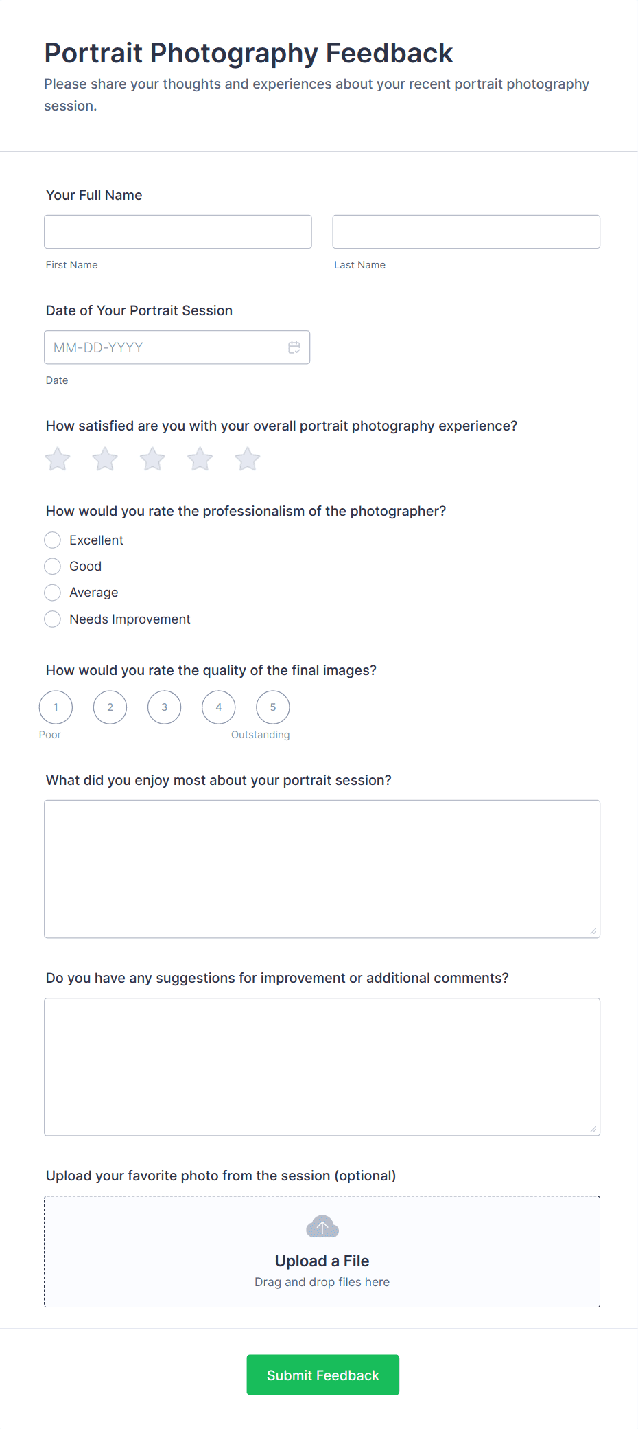 A photography form template is a pre-designed online form that helps photographers collect information for bookings, model releases, orders, feedback, and more, streamlining administrative tasks.