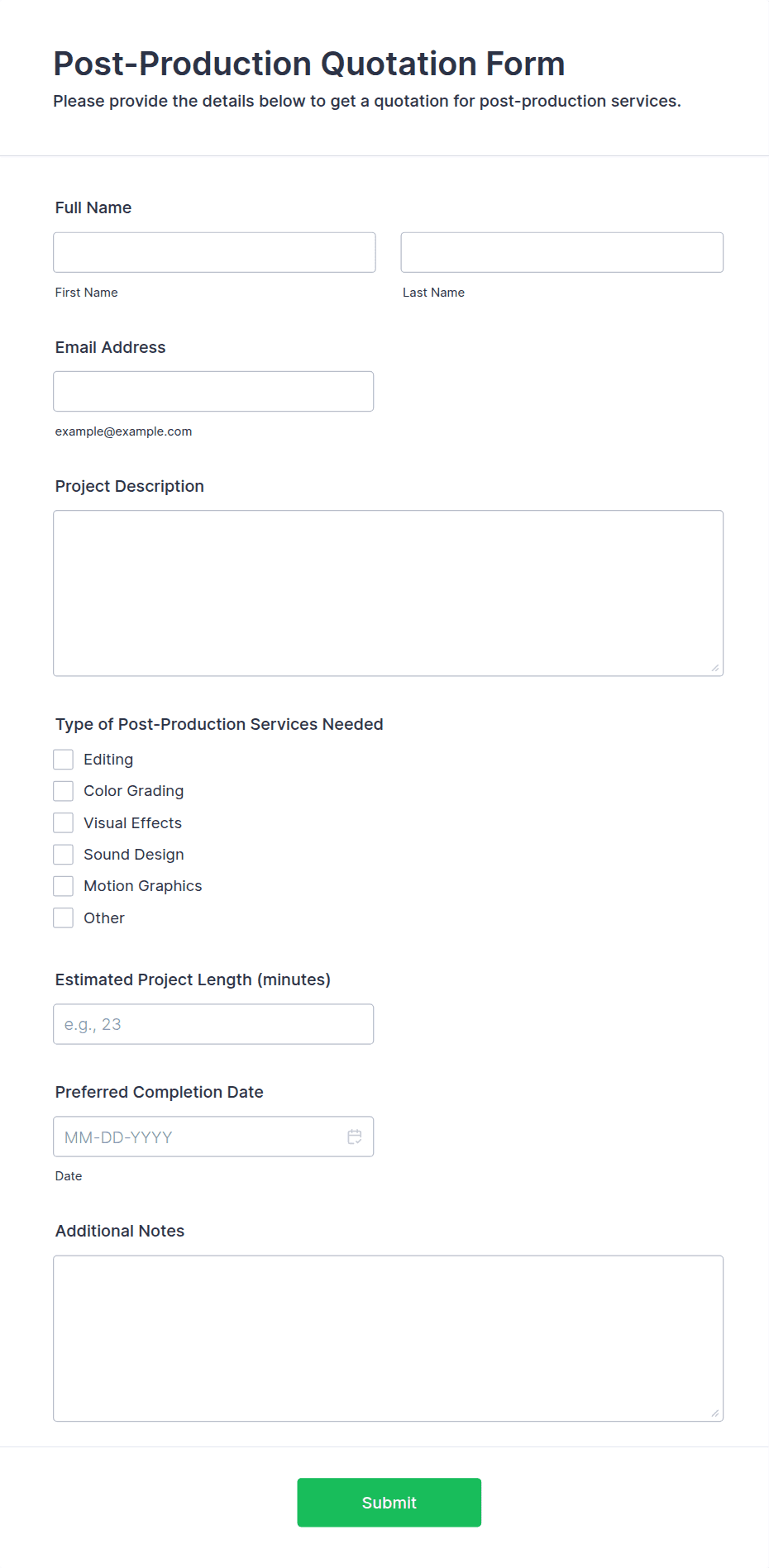 • For service orders, include fields like date/time pickers, dropdowns for service types, and text fields for special instructions.