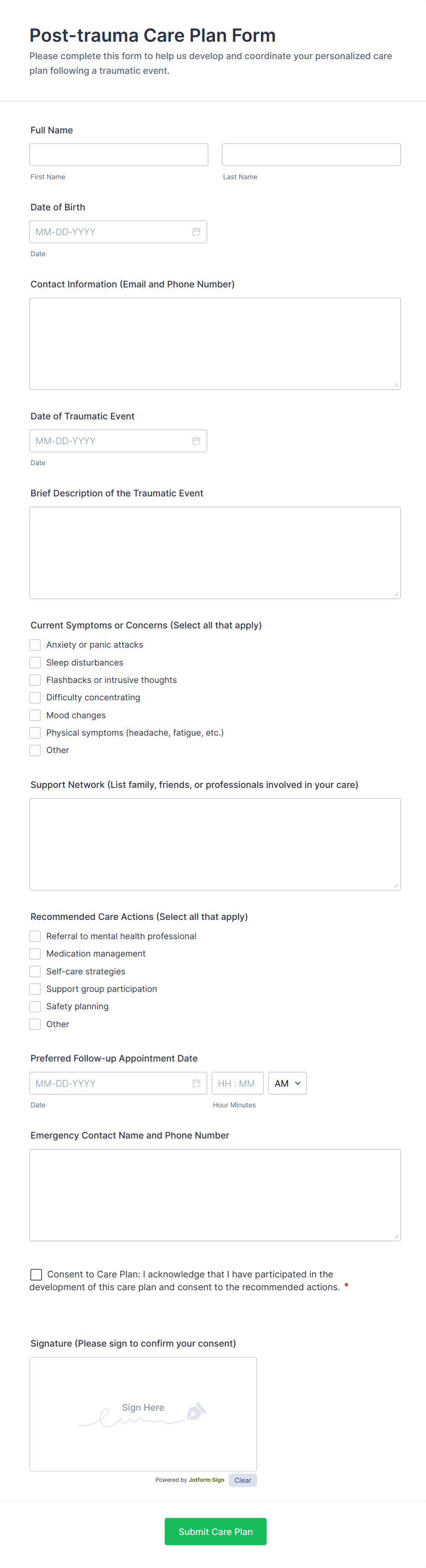 Get started by choosing one of our healthcare templates or start customizing your own. Additionally, Jotform offers a simple way to update medical history, acquire consent e-signatures, collect bill payments, find new business, and more. Jotform also offers HIPAA compliance features so your healthcare forms stay secure.