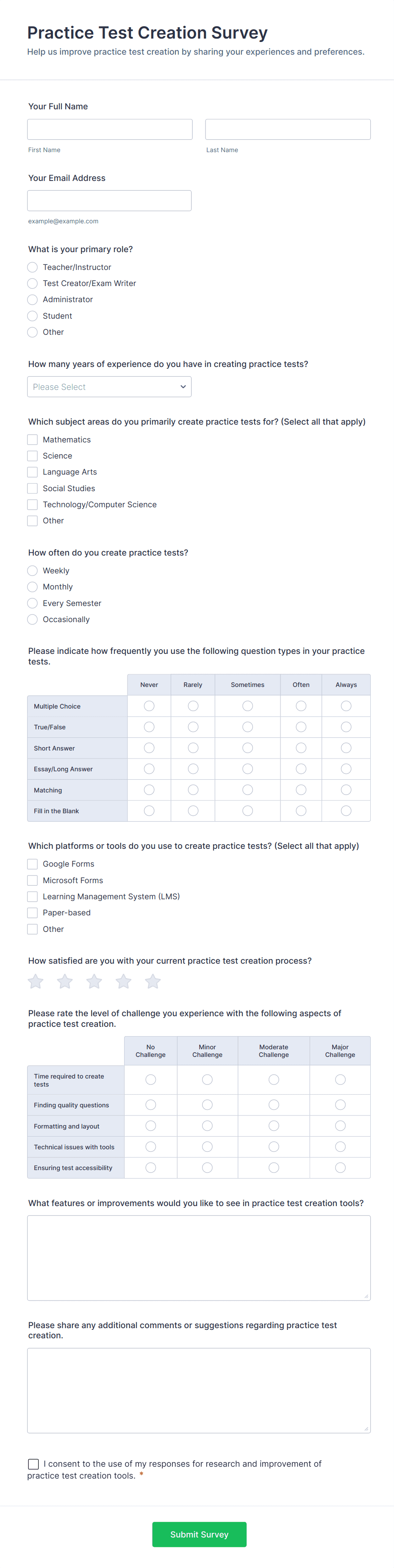 • For teacher or staff surveys: Include self-assessment fields, peer review sections, and narrative response options.