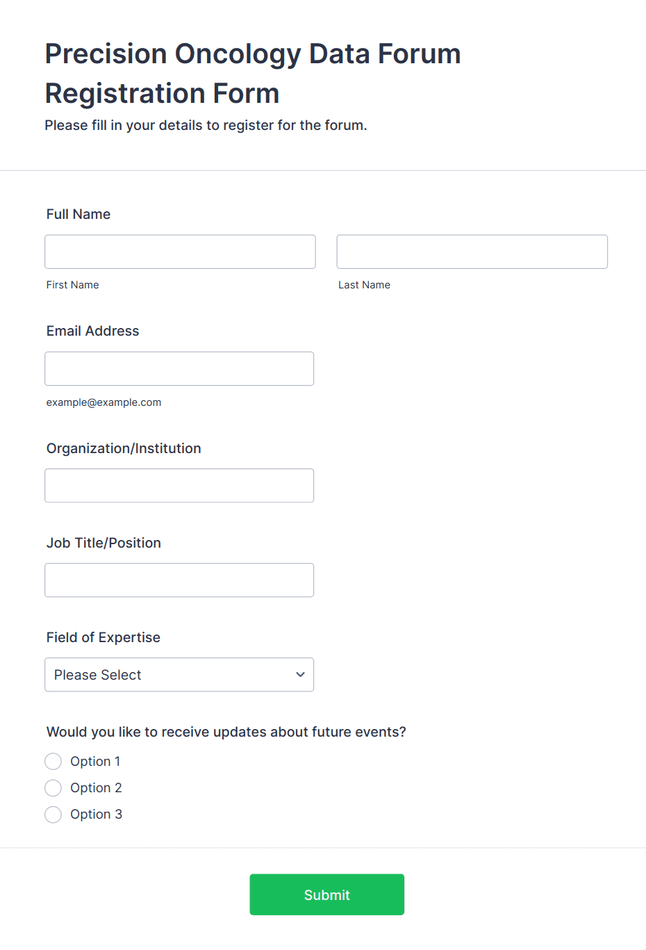 A workshop RSVP form that provides your submitters with all necessary information related to the event and allows gathering your submitters' company and title information with their contact details.
