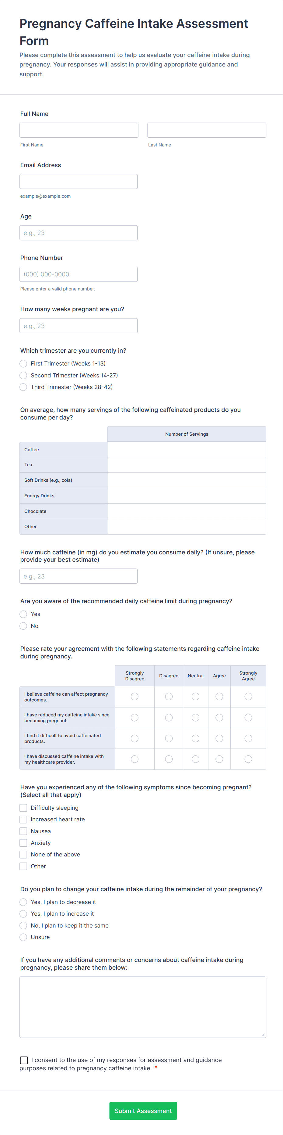The Diet and Nutrition Assessment Consent Form allows dietitians and healthcare providers to collect essential information and consent from clients regarding their dietary habits and nutrition needs.