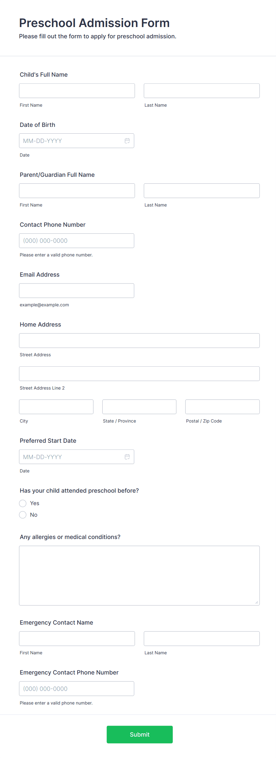 - For event or course registrations, include fields for session selection, preferences, or special requirements.