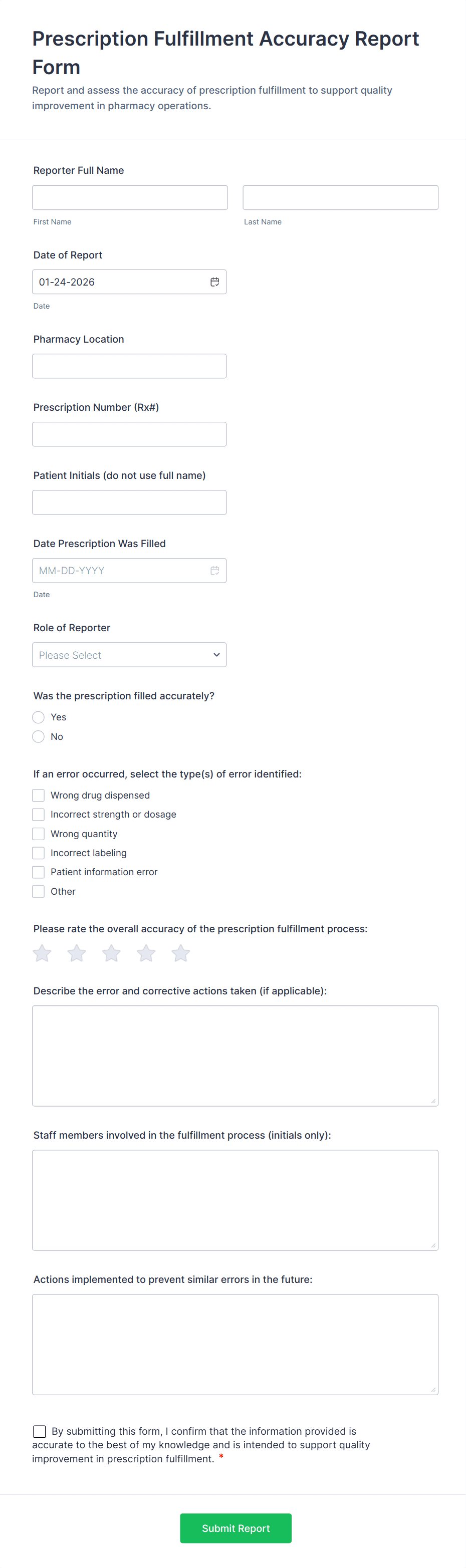 Pharmacy forms help ensure accurate data collection, streamline workflows, support regulatory compliance, and enhance patient safety by reducing manual errors.
