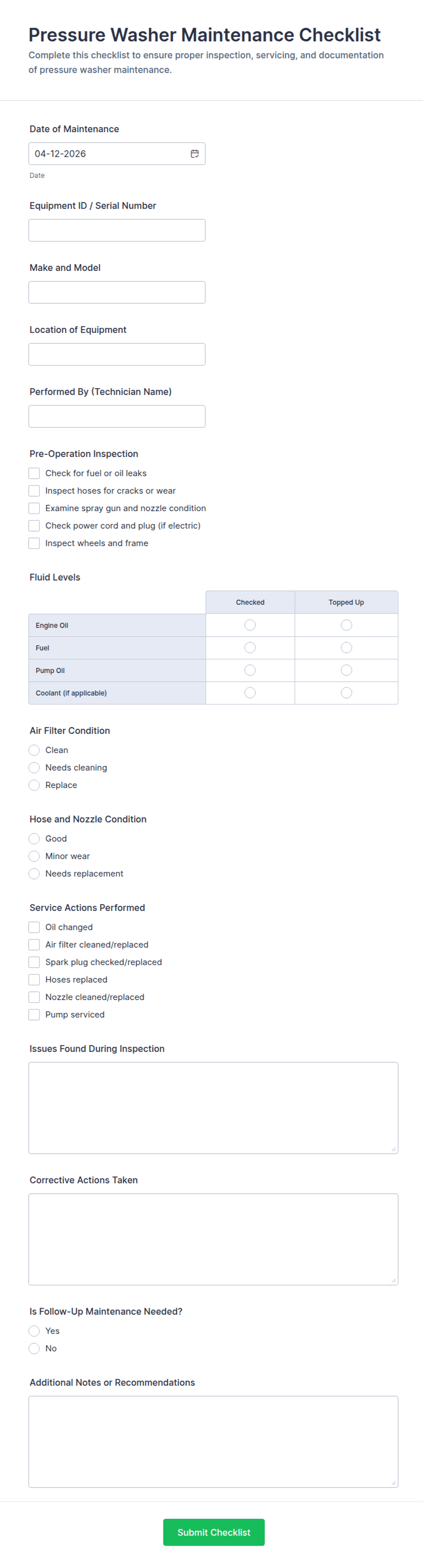 - Preventive maintenance checklist submissions