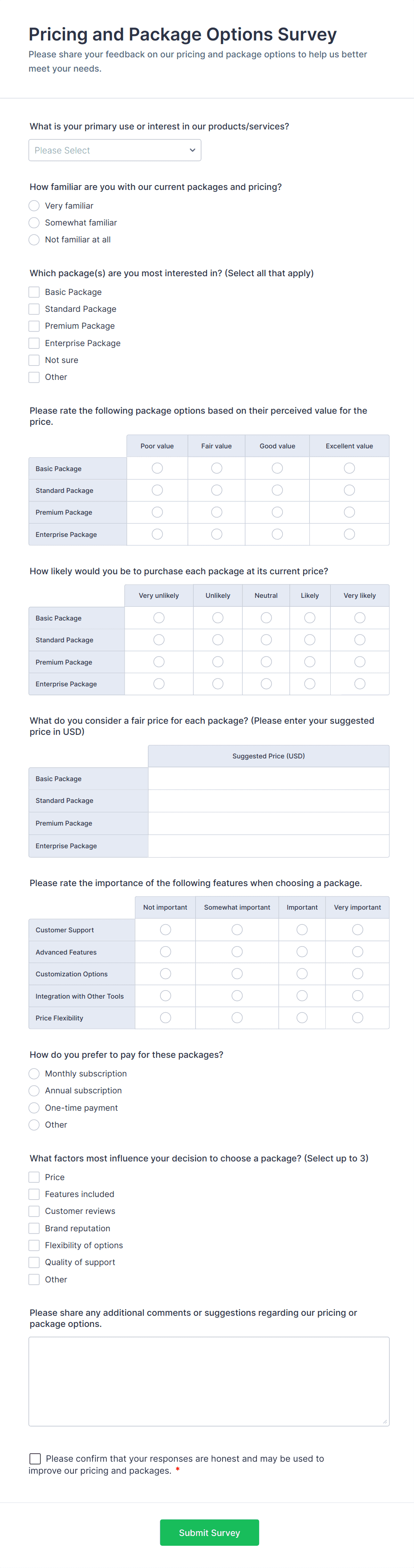 Do want to know if your prices are suitable for your customers? Find out with this pricing estimation survey.