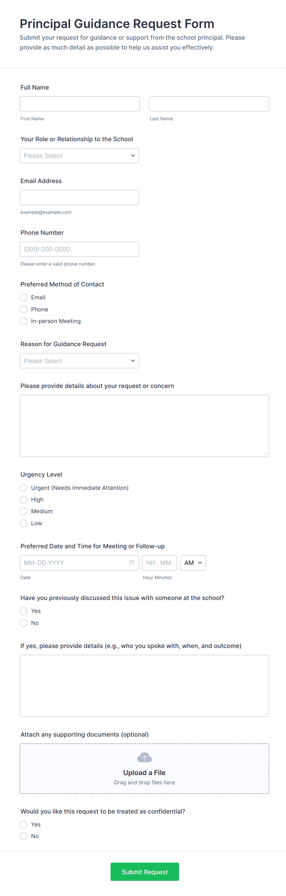 • Use conditional logic to show or hide fields based on the request type or user responses.