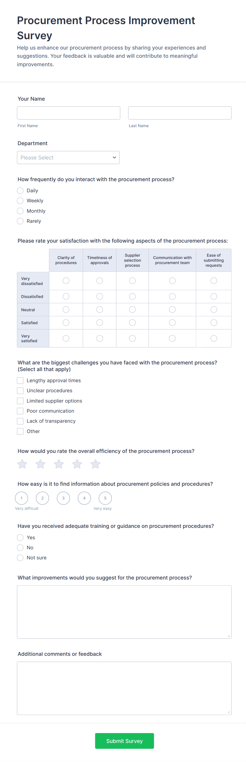 For employee surveys, consider adding anonymity options; for customer surveys, include contact fields if follow-up is needed.