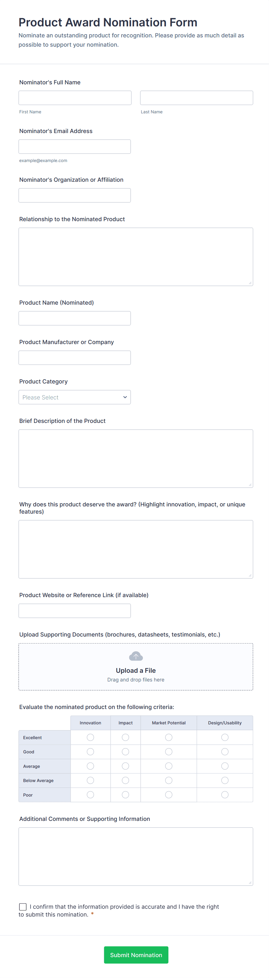 Do you plan to provide awards in your industry or organization? This form will help you get nominations easily.