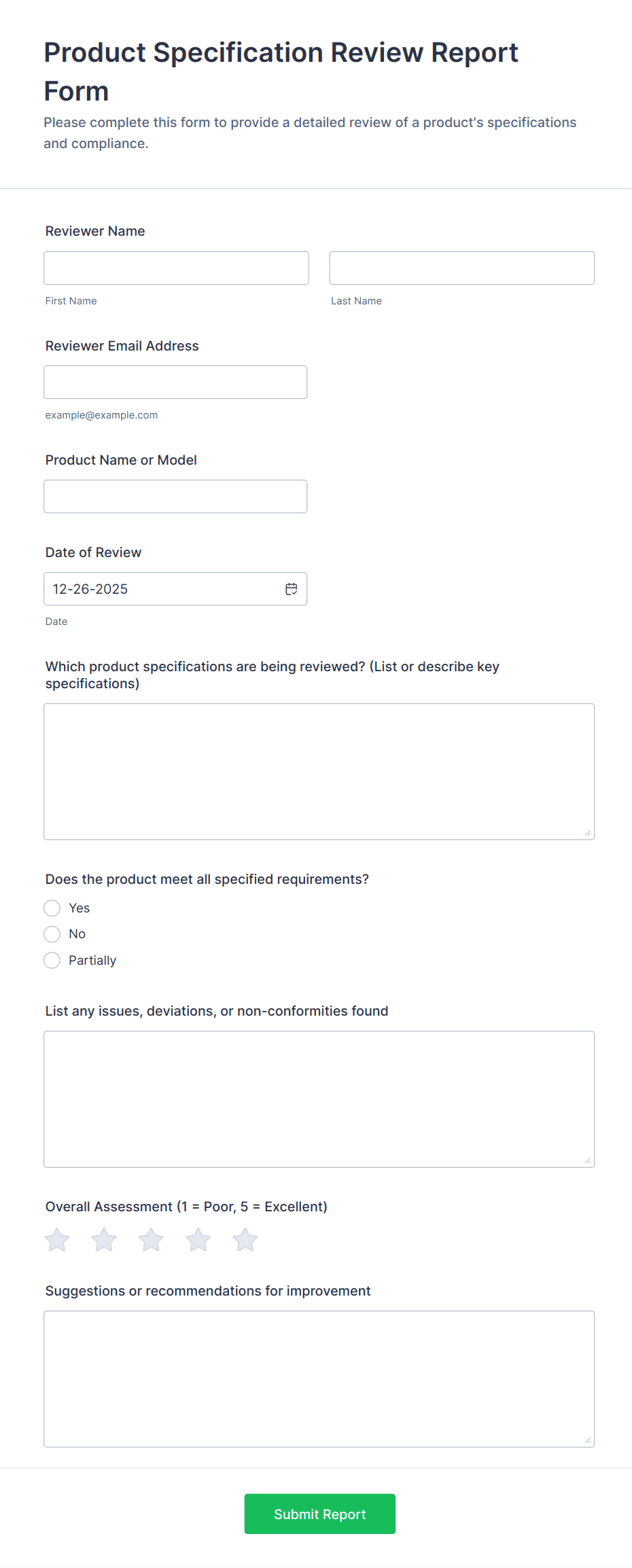 • Conditional Logic: Show or hide fields based on previous answers to streamline the reporting process.
