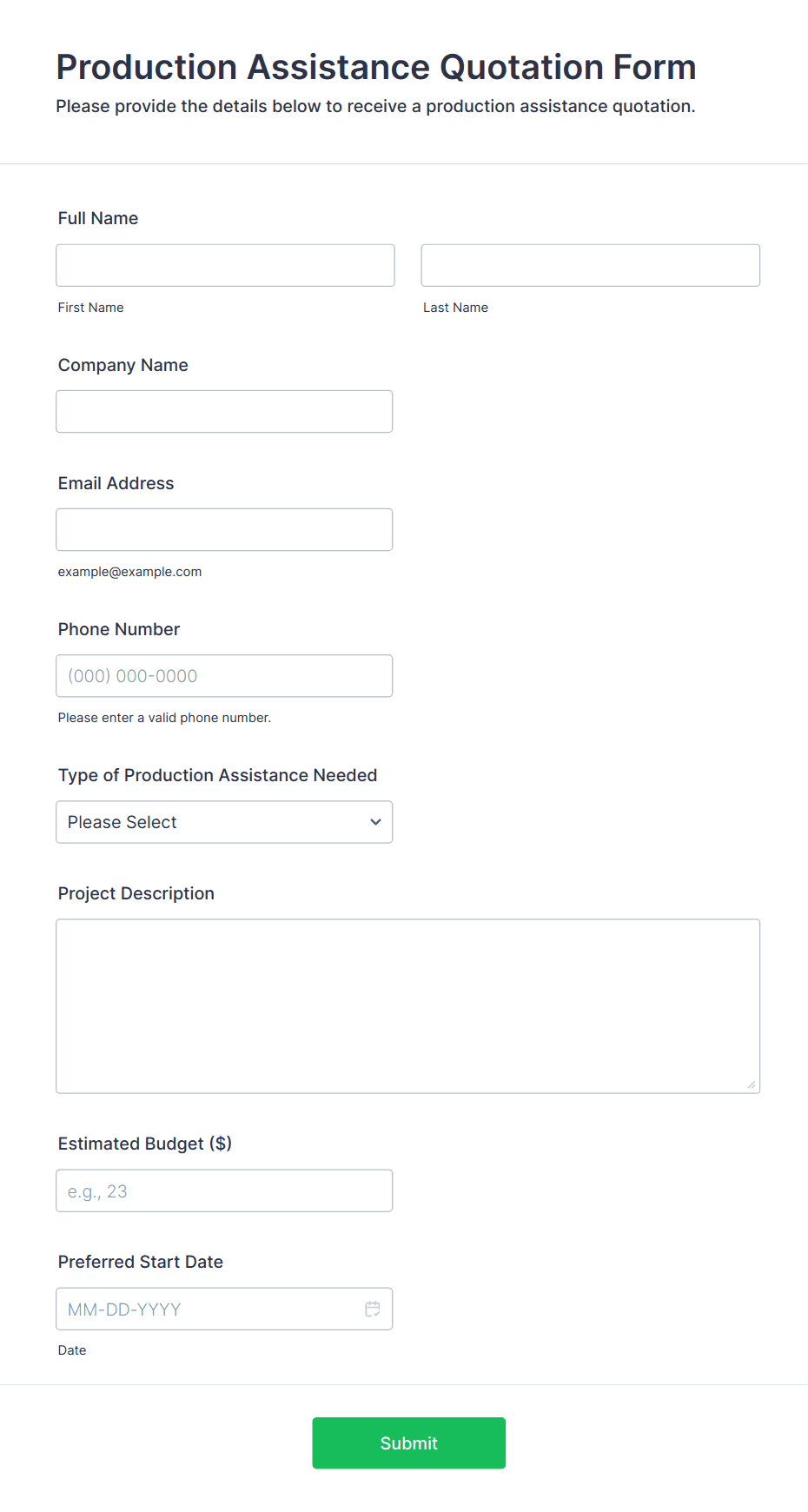 - Service Bookings: Forms might require date/time pickers, service options, and customer contact details.