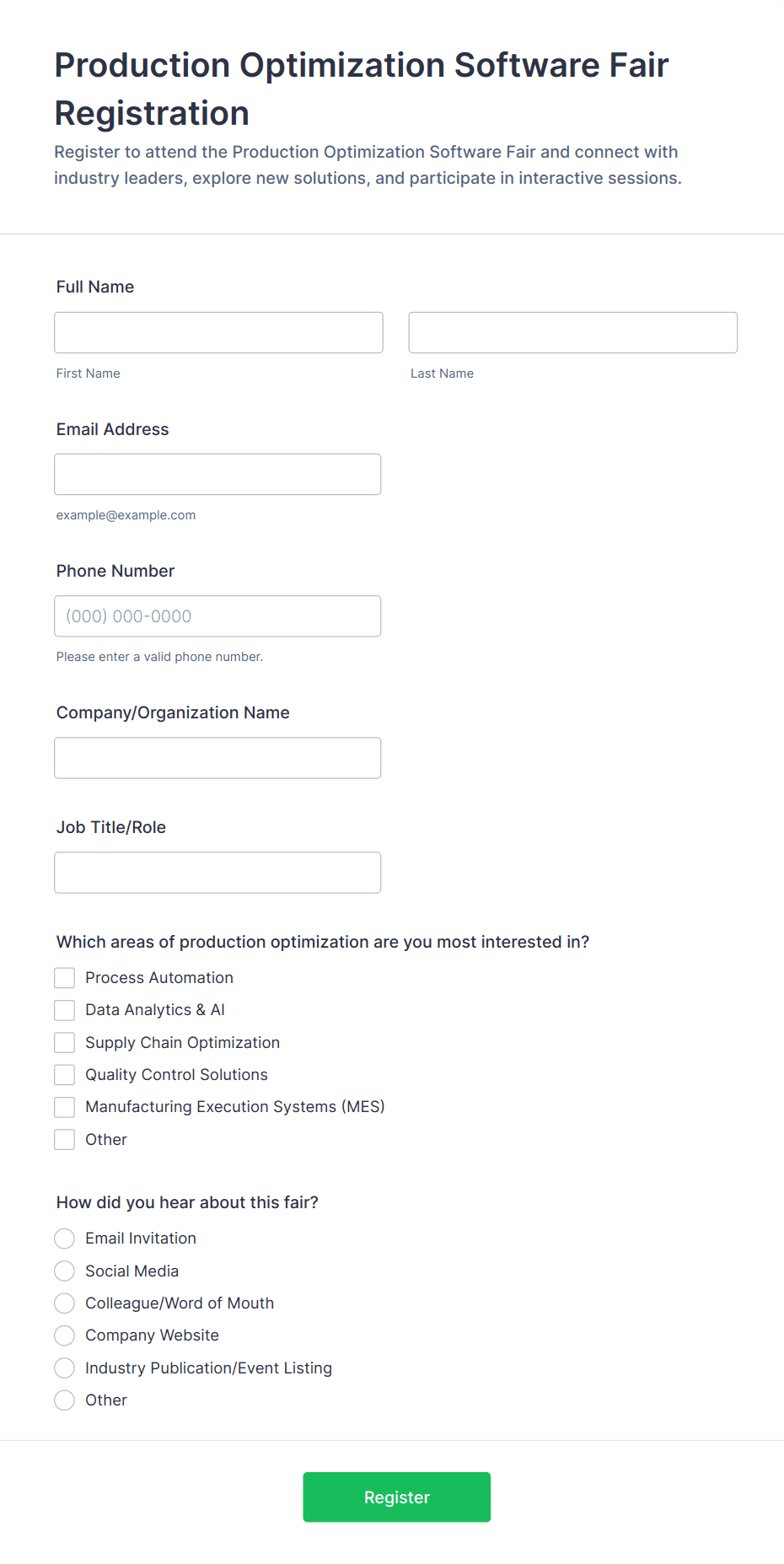- For speaker or exhibitor forms, add fields for presentation topics, company details, or booth preferences.