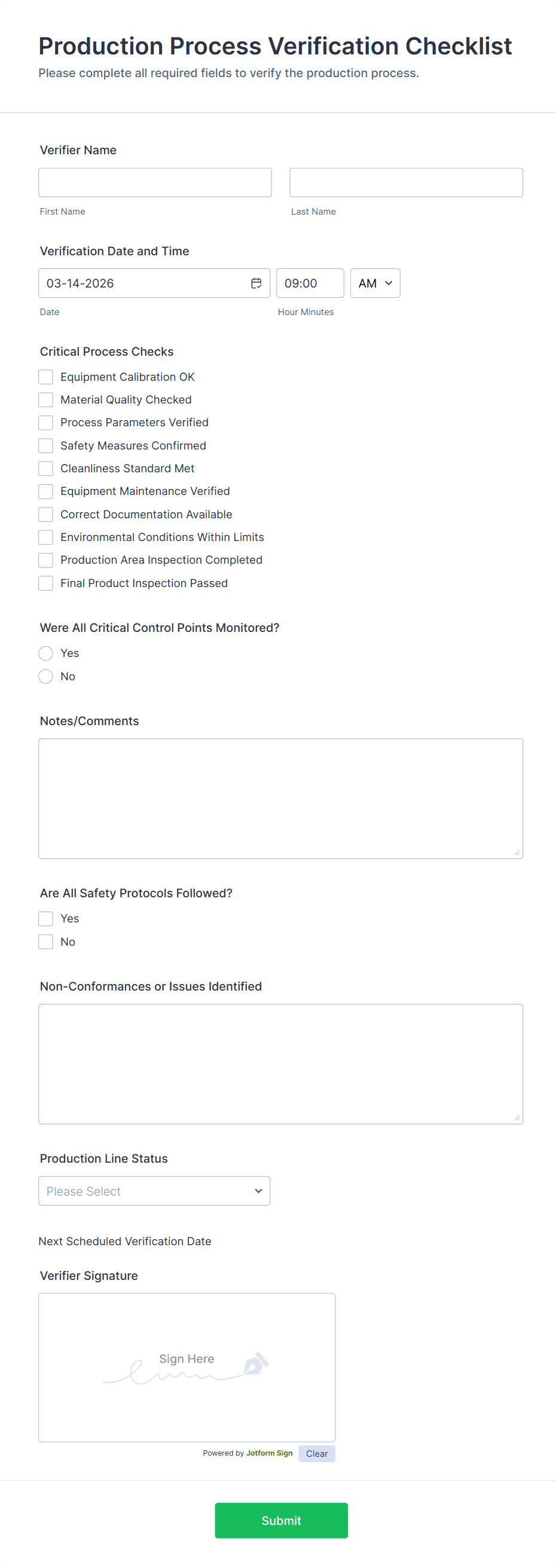 A manufacturing form is a digital or paper-based document used to collect, track, and manage data related to production, quality control, maintenance, inventory, and safety within a manufacturing environment.