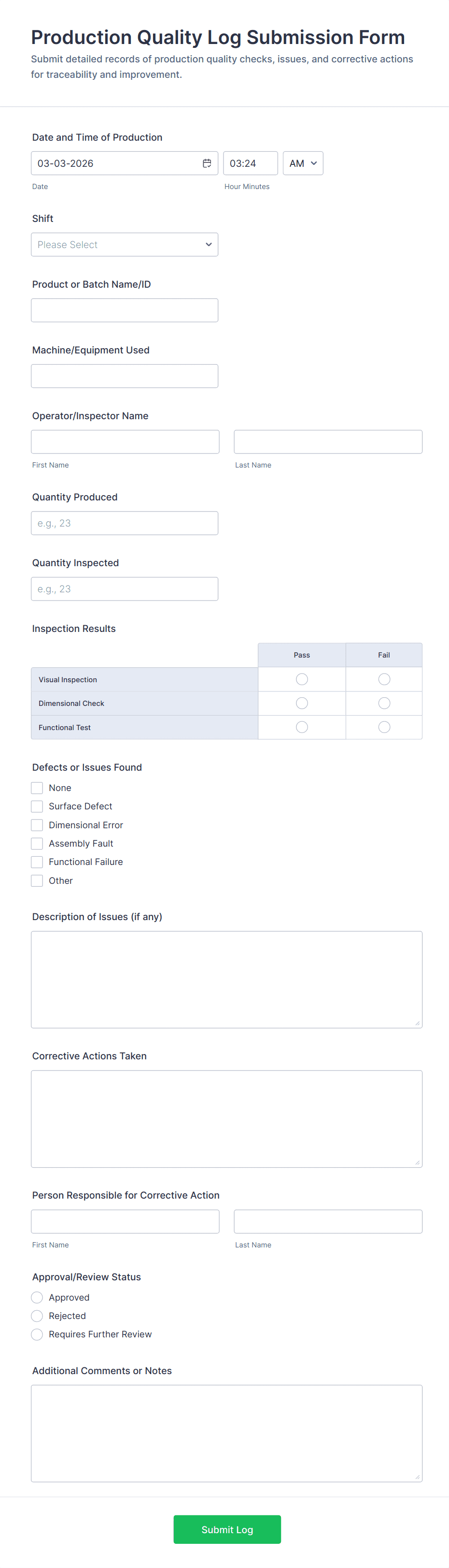 A manufacturing form is a digital or paper-based document used to collect, track, and manage data related to production, quality control, maintenance, inventory, and safety within a manufacturing environment.