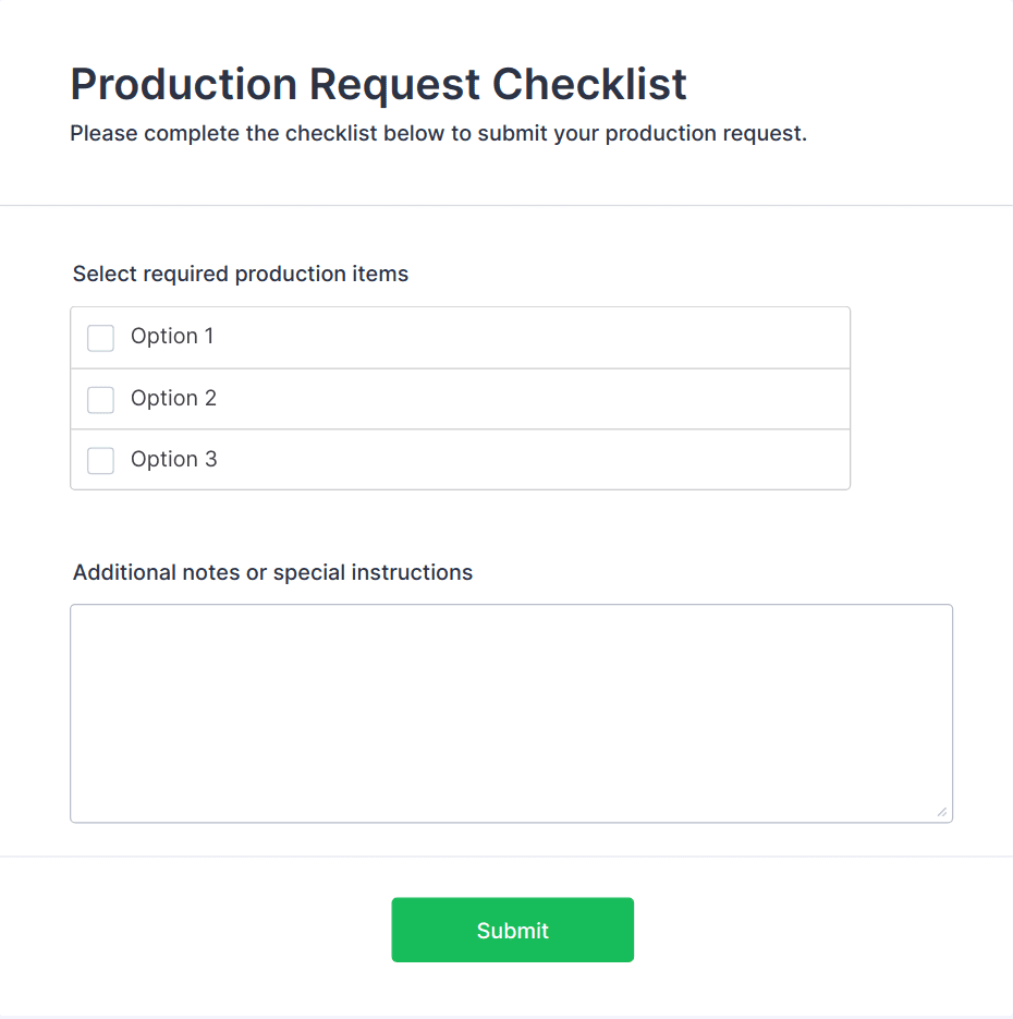 • For more complex checklists, add dropdowns, file upload fields (for attaching evidence or reports), or signature fields (for verification).
