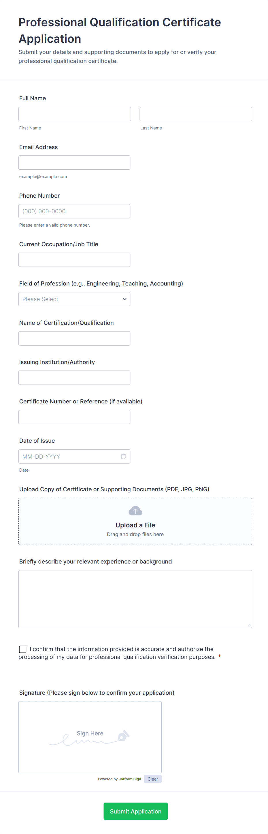 Creating an effective verification form with Jotform is a straightforward process that can be tailored to your specific use case, whether you’re verifying identities, documents, or employment status. Here’s a step-by-step guide to help you design, customize, and manage a verification form that meets your needs: