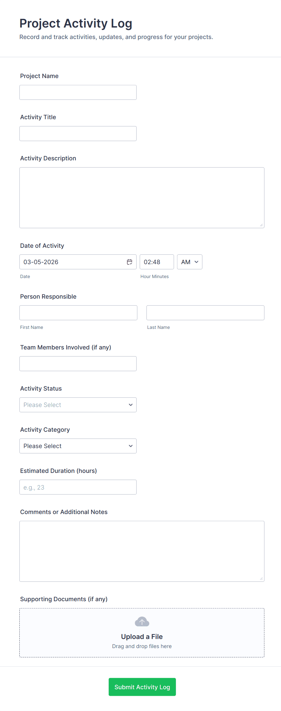 Daily Activity Log Form