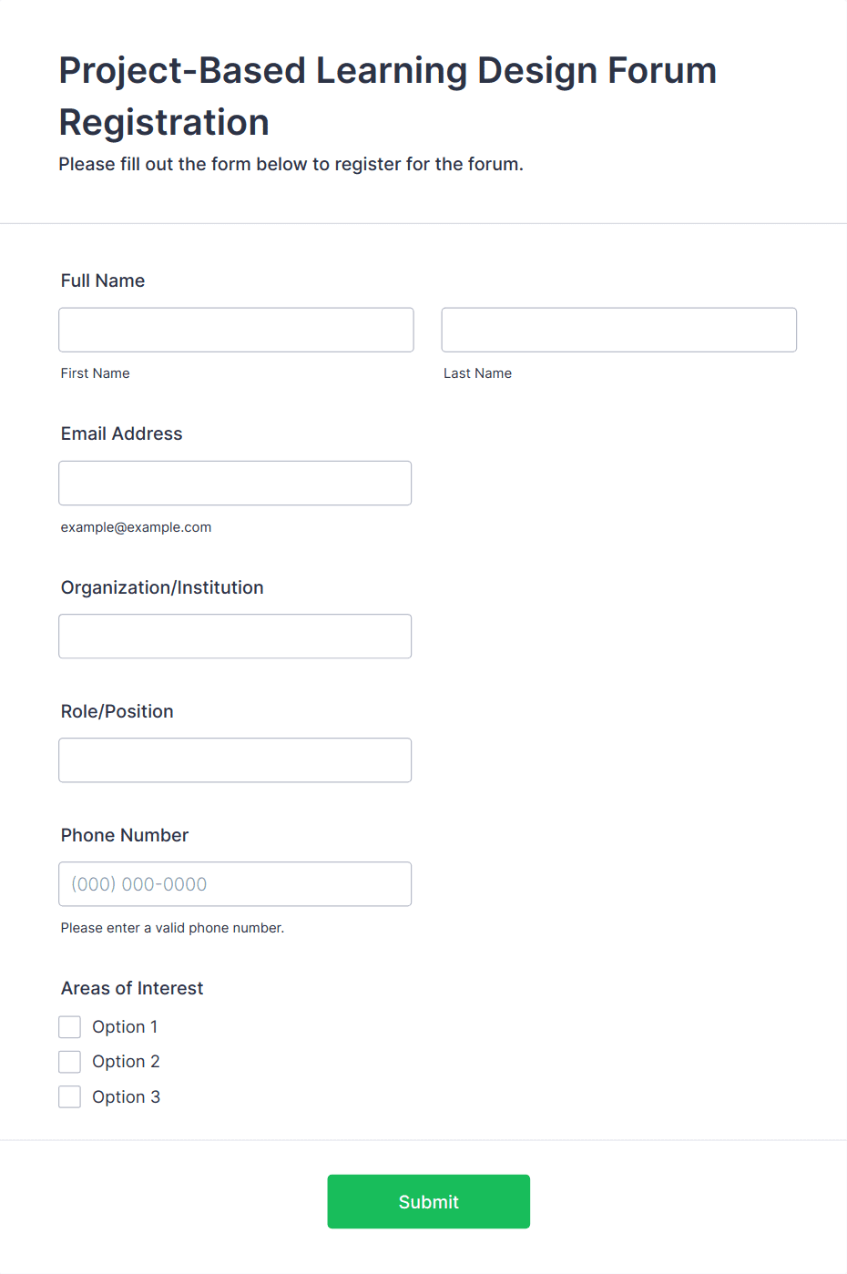 3. What information should be included in a workshop registration form?