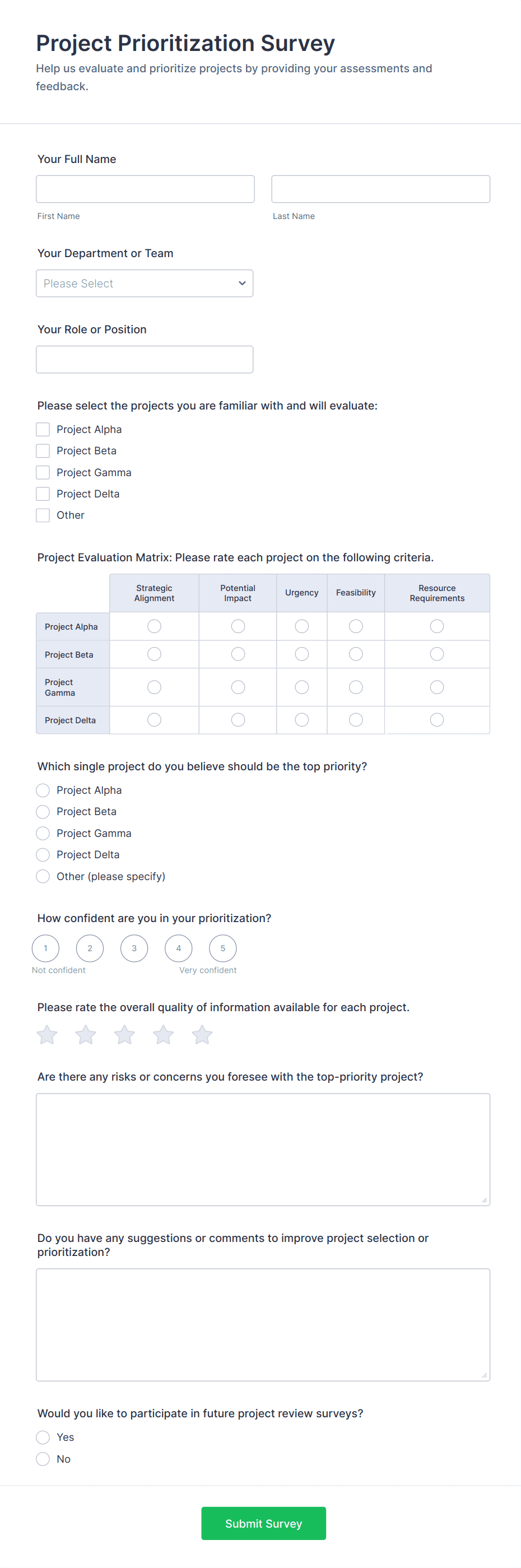 For employee surveys, consider adding anonymity options; for customer surveys, include contact fields if follow-up is needed.
