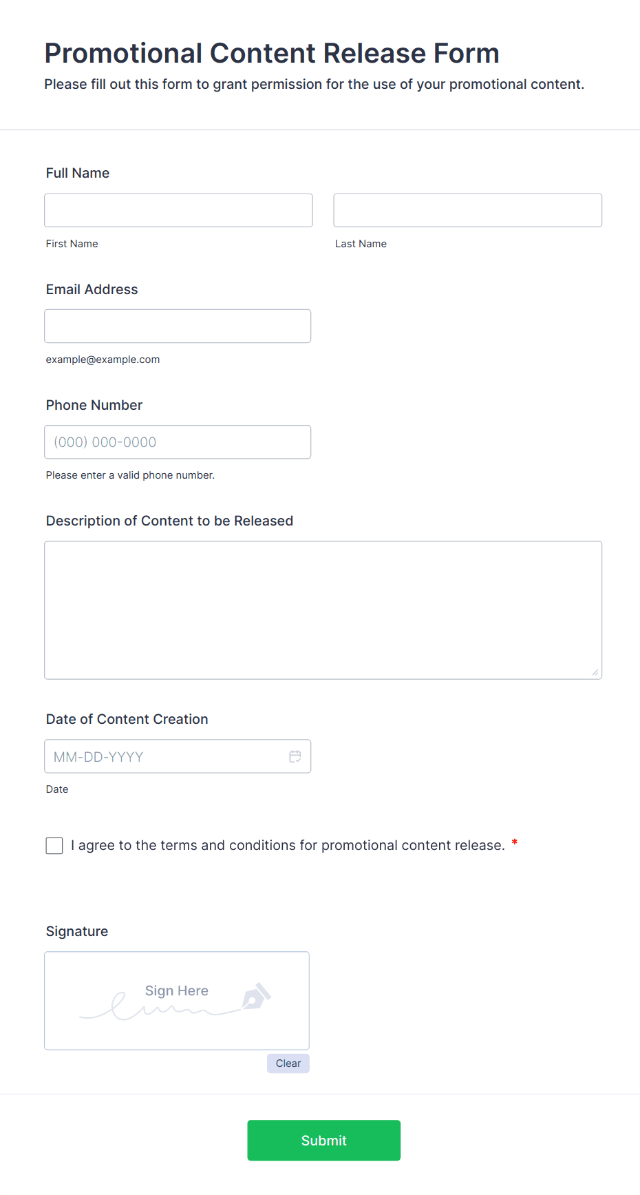A media release form lets you collect and store information related to press releases and media releases. Focus on your next press release without worrying about losing a single piece of important information with Jotform!