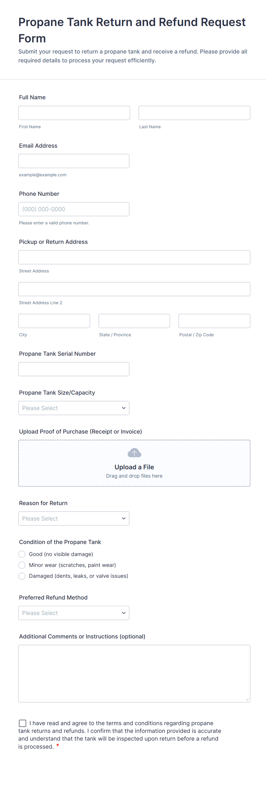 - E-commerce Refunds: May require order number, product details, reason for return, and upload fields for receipts or photos.