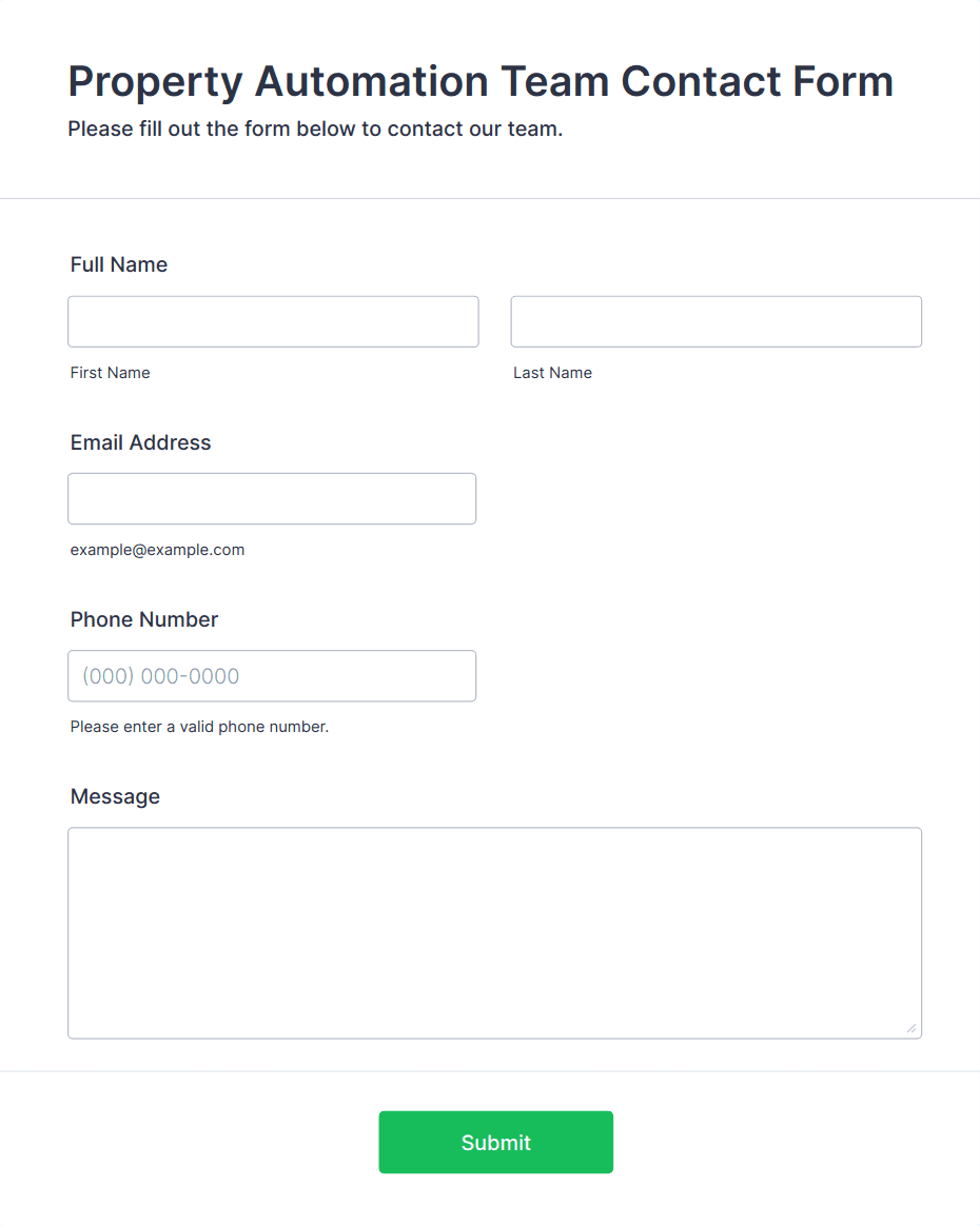 At a minimum, contact forms typically collect the user’s name, email address, and message. Depending on the use case, additional fields like phone number, inquiry type, or file uploads may be included.