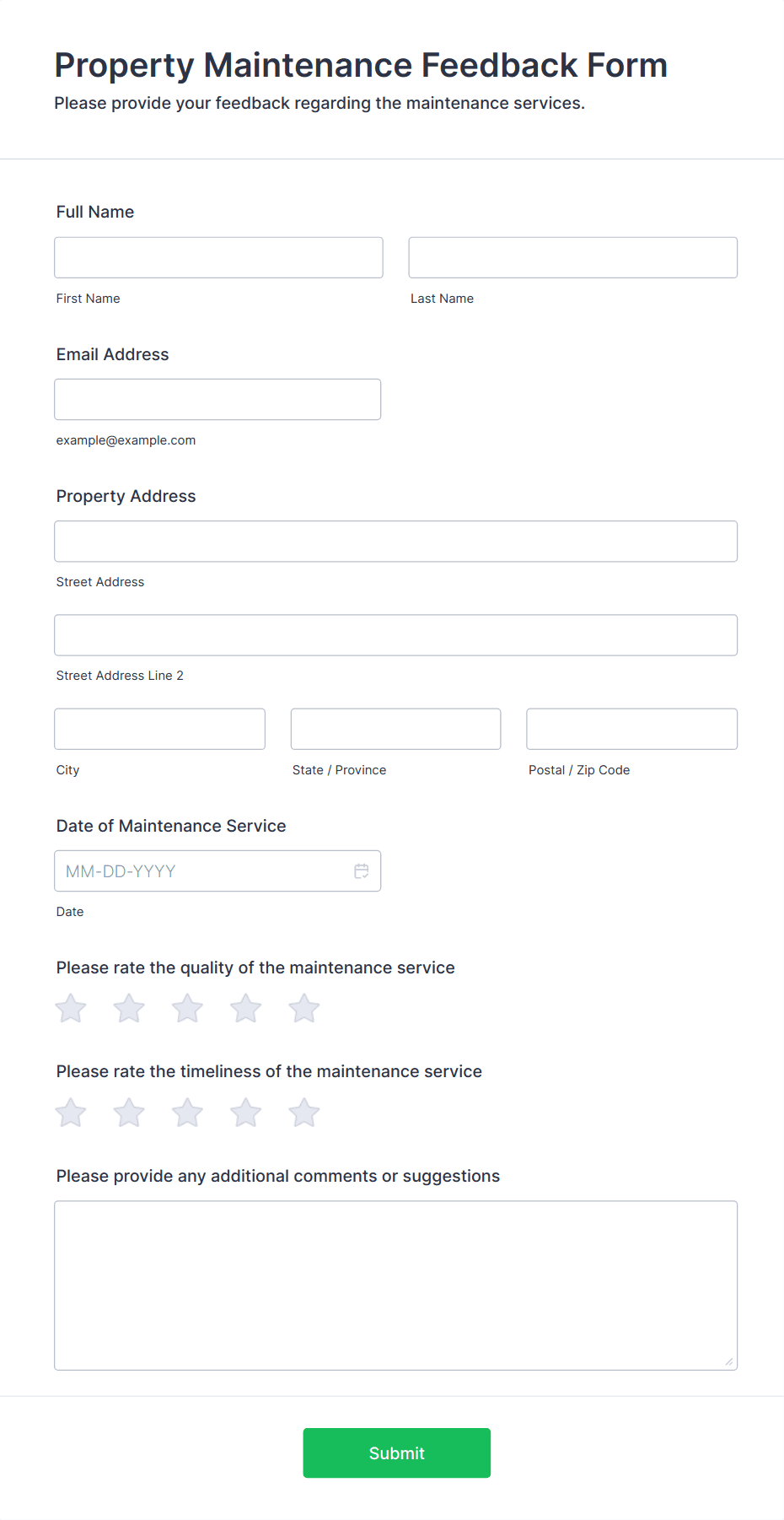 • Product feedback forms may include questions about usability, features, and likelihood to recommend.