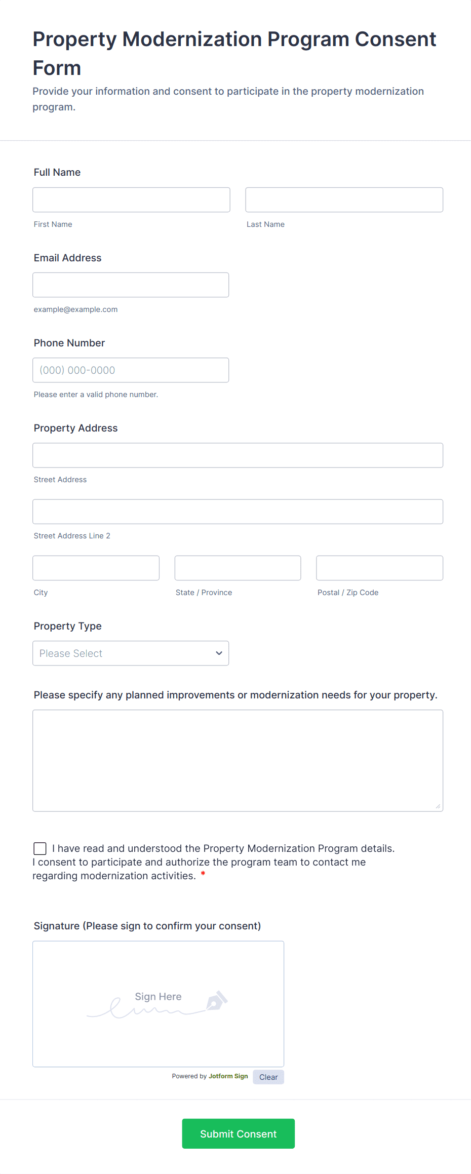 A property information form is a form used to collect information about a property. Customize this template according to your needs. No coding!