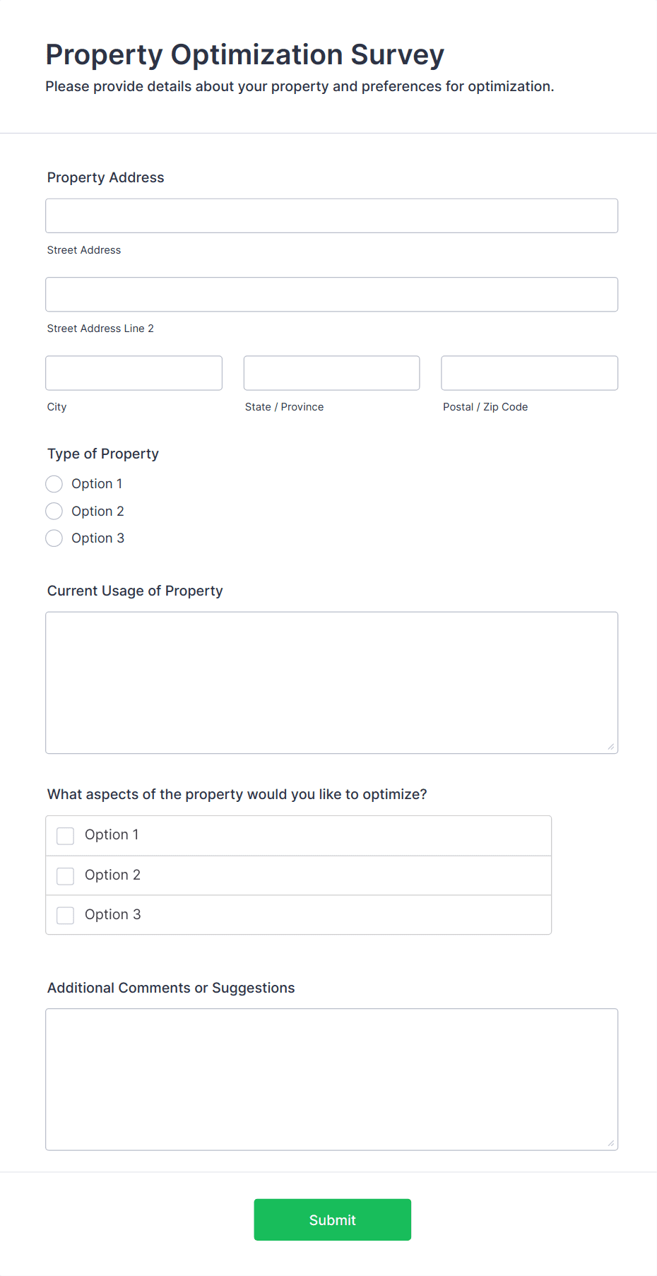 A property information form is a form used to collect information about a property. Customize this template according to your needs. No coding!