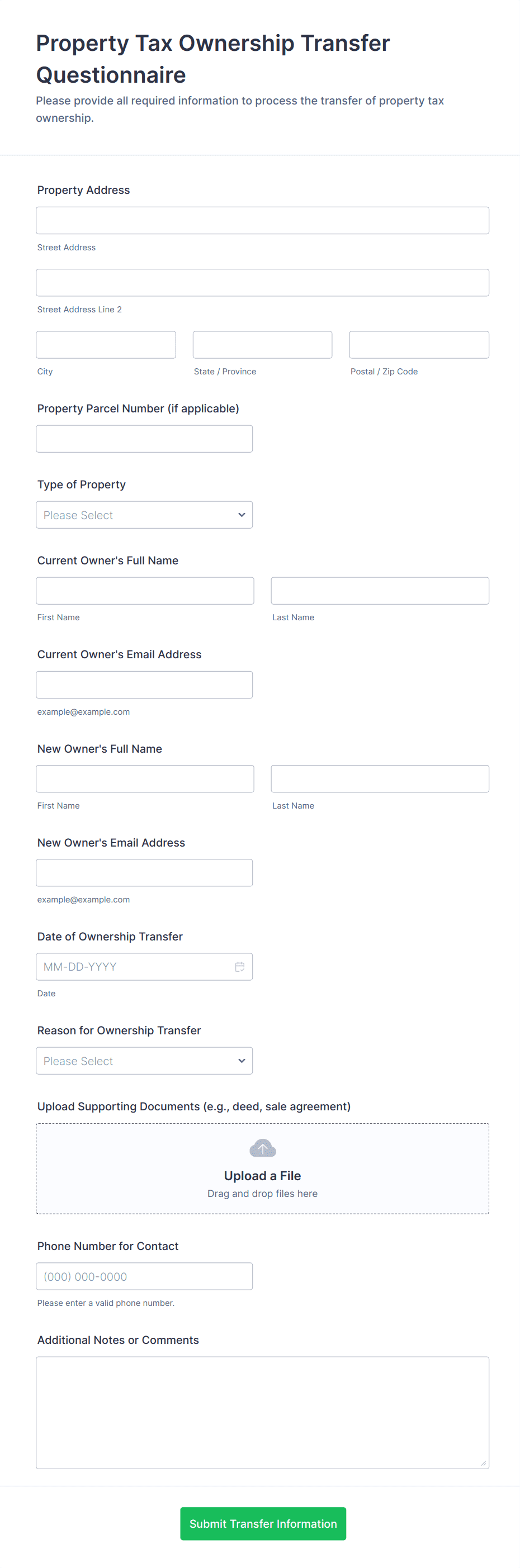 The form templates here are for informational purposes only. Jotform is not providing legal, financial, or other advice, or implying that the forms are legally valid in all or any jurisdictions. Before using any such form, consult an attorney and/or other applicable professionals to make sure that the form meets your needs, legally and otherwise.
